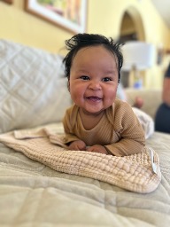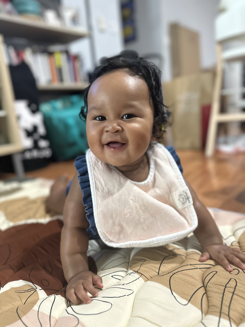 What are Nai'a's favorite activities?Story time is Nai’a’s thing! She gets so animated when you’re reading to her, especially if there are animal pictures and you make sound effects. She’s a social butterfly, who loves to be part of the action, especially with family and friends. Nai’a also enjoys the outdoors— chilling on the front porch with her grandparents, feeling the breeze and watching everything that’s happening around her, or going on neighborhood walks. She thrives on meeting people, laughing, and trying new foods!