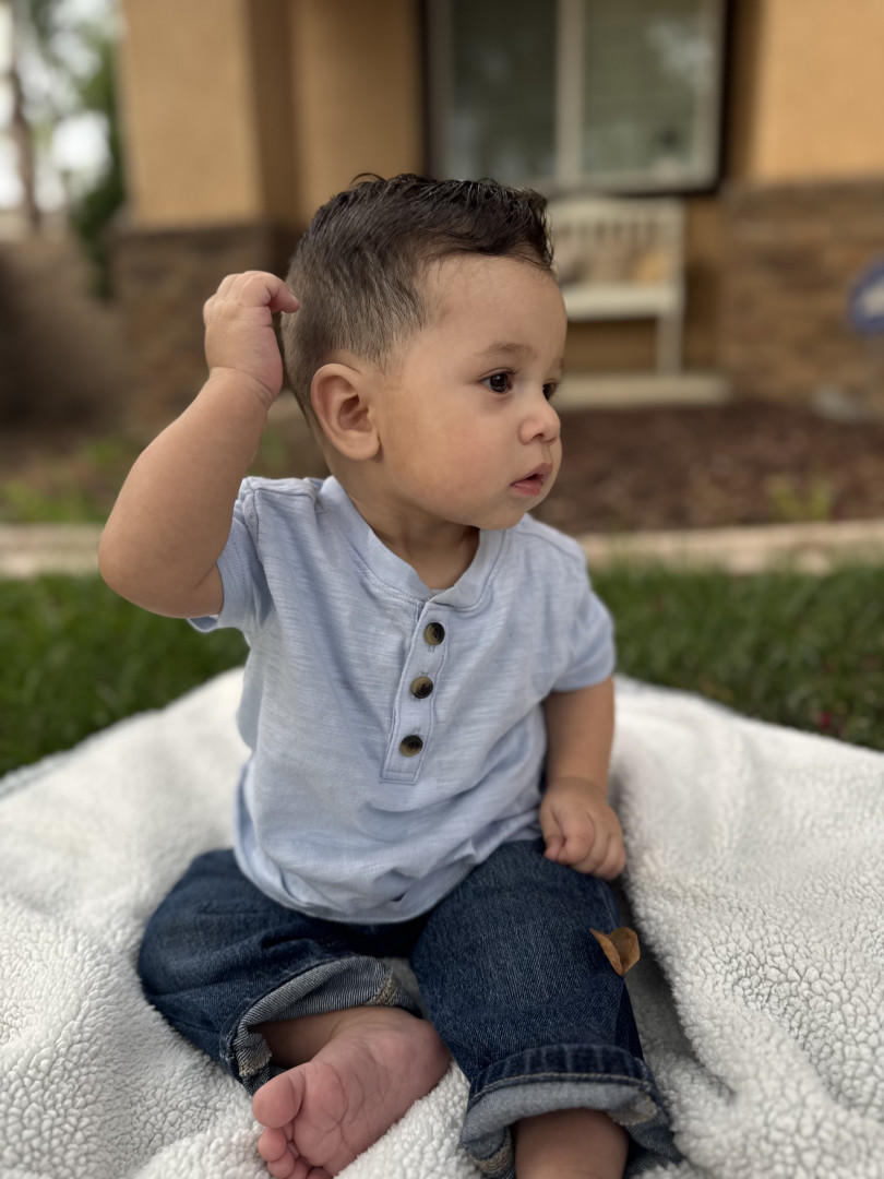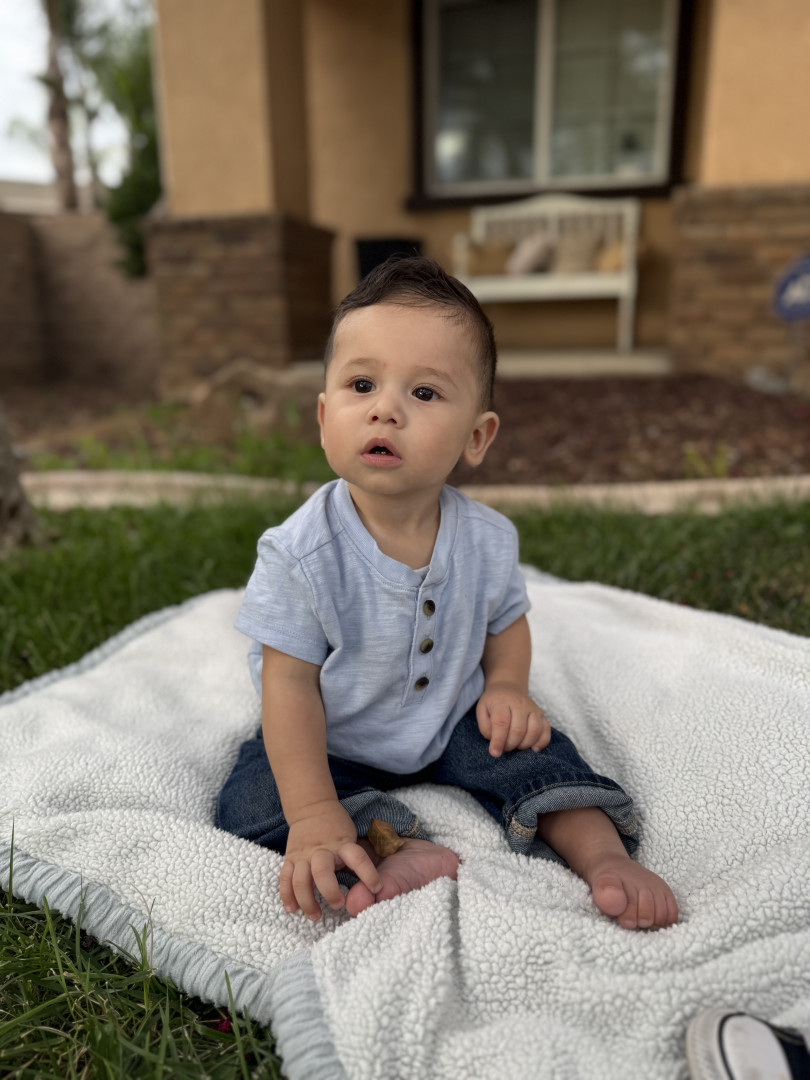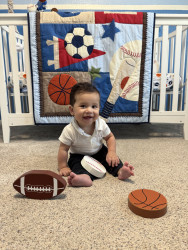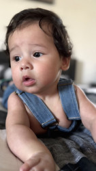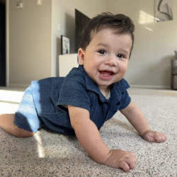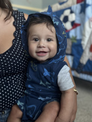 What are Noah Ezekiel's favorite activities?Noah enjoys making diaper changes a memorable experience, well if you do not mind getting a little wet. When Noah is not crawling around or standing to steal his brother's toys, you can find him trying to open a cabinet or drawer to take stuff out and use as personal rattle or drum set. At night you can hear Noah singing while you are trying to sleep or getting out of his crib to crawl on top of you and cuddle next to you.