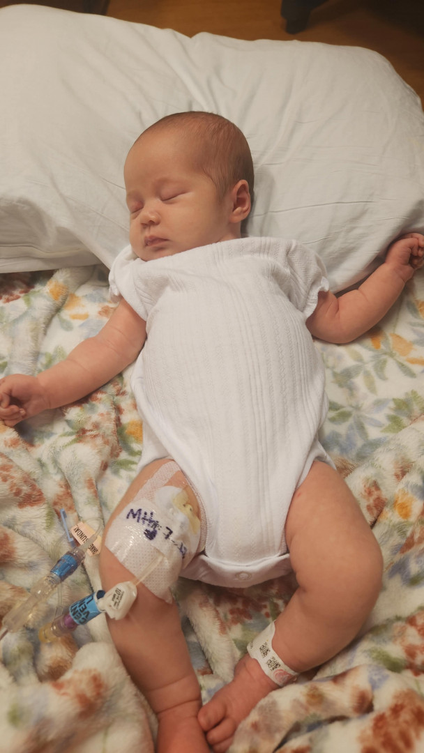 What are Oakleigh McBride's favorite activities?She loves when she gets to be home playing with mom and dad, watching big brother, and building her strength with tummy time.