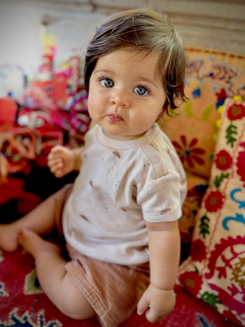 What are Ocean Vanik's favorite activities?Ocean is Mama’s girl through and through. She loves playing peekaboo, giving sloppy kisses, and sharing her beautiful dimple-cheeked smile from Mama’s arms. She adores her big brother and is learning to keep up with him- her eyes always sparkling with determination. Head-banging to music and crawling are also among her favorite things. Bath and bedtime with Daddy are the highlights of her evening—filled with giggles, splashes, and pure joy as she soaks up every moment of dad’s love.
