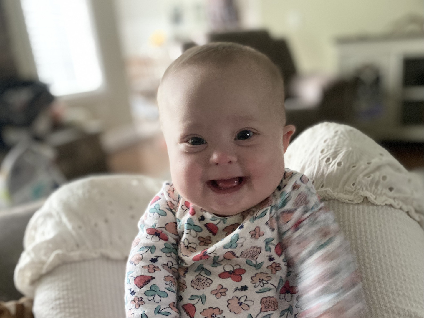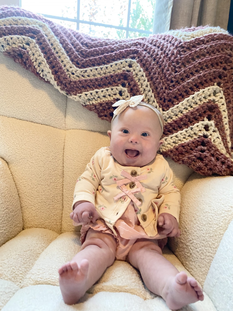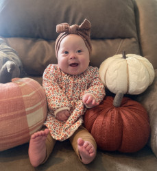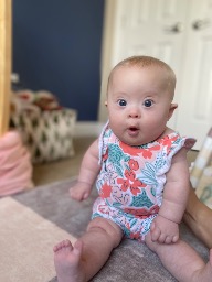 Olive is the sweetest, smiliest little peanut! She has Down’s Syndrome but is so strong and just loves everyone!