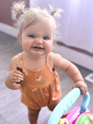 She befriends anyone and everyone with her quirky personality. She’s absolutely hilarious and loves to make people laugh. Olive is an absolute ray of sunshine in our lives and to everyone she meets. So many people say she’s the most well behaved, and sweetest baby they’ve met. We are so proud of her.