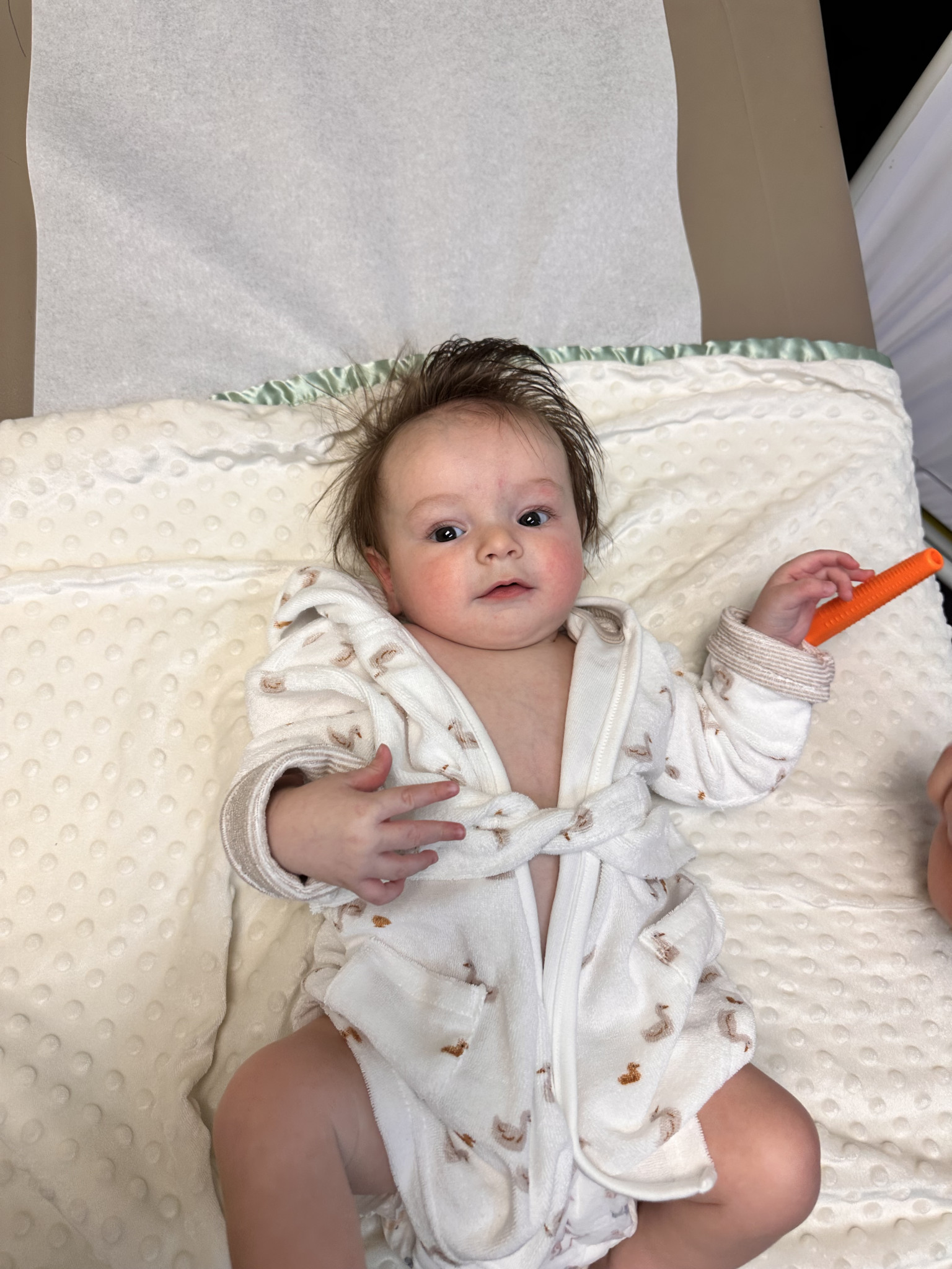What are Oliver Grogan's favorite activities?He loves tummy time with his aquarium and listening to music. Feeding times are always fun especially when he’d rather talk and laugh than eat. He loves learning with his hands and feet by splashing in the bathtub and playing with his sensory toys. He’ll talk your ear off and tell you stories only he understands.
