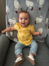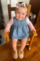 Palmer Grace is pure sunshine! Curious, joyful, and full of wonder. Her laugh lights up a room, and her gentle spirit draws people in. She’s also a determined little firecracker, always exploring and learning. She makes every day brighter just by being herself!