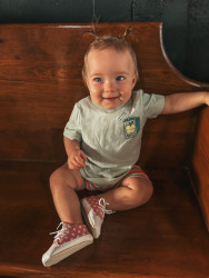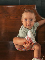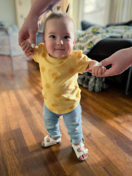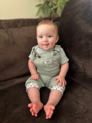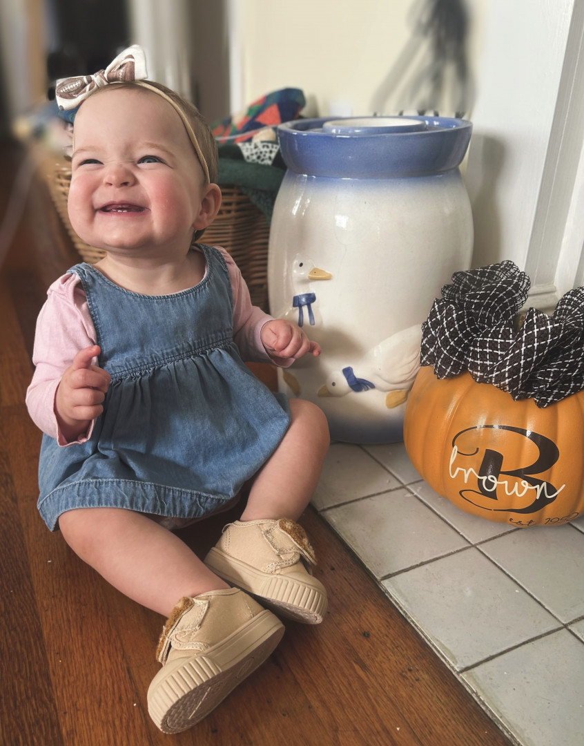 What are Palmer Grace Brown's favorite activities?Palmer loves exploring the world around her — from splashing in the bath to knocking down block towers with a giggle. She enjoys music, clapping along to songs, and flipping through picture books. She’s happiest when she’s moving, playing, and discovering something new.