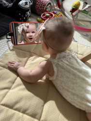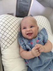 What are Paloma's favorite activities?Her favorite activities include kicking her little legs with excitement, reaching out to grab and explore colorful toys, and having “conversations” filled with sweet coos and giggles. She lights up during tummy time, proudly showing off her strength, and she melts hearts when she smiles back at anyone who smiles at her first. Whether she’s listening to lullabies, babbling her own songs, or snuggling close for cuddles, she fills every moment with warmth, wonder, and pure happiness!