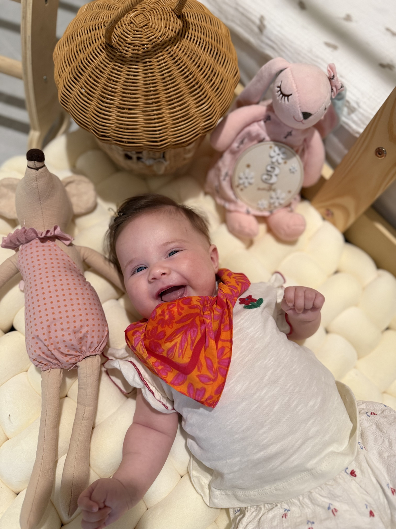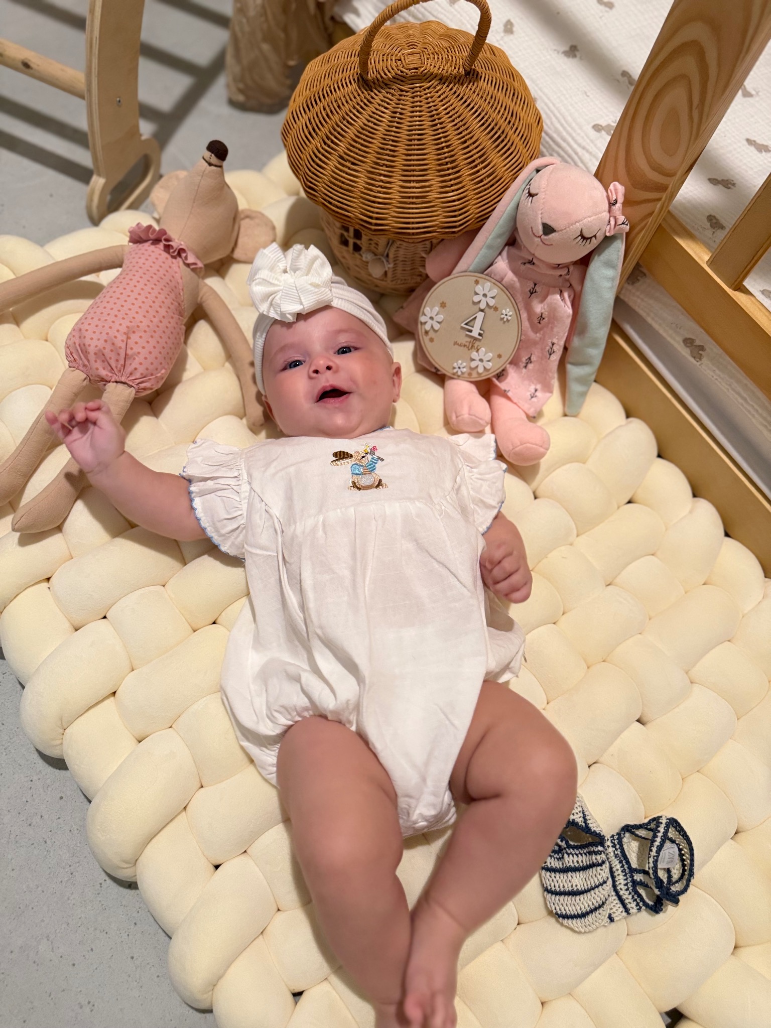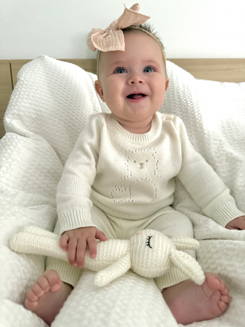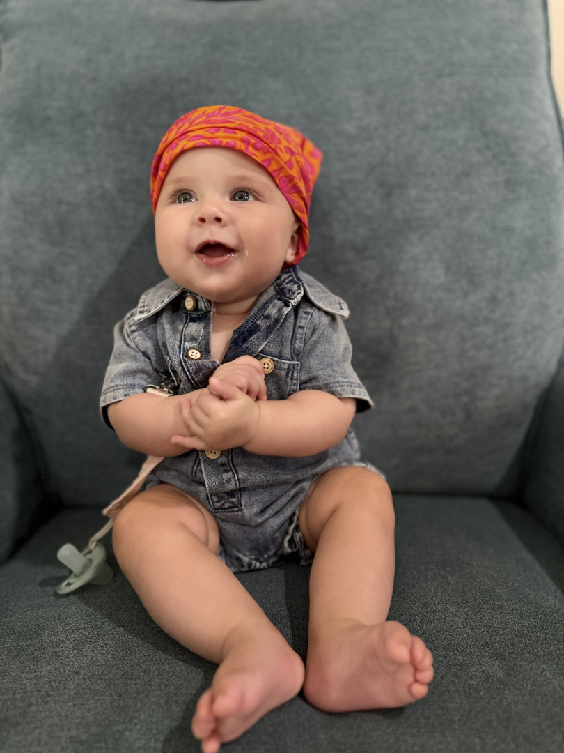 At just five months old, she is already proving that big personalities come in the tiniest packages. Her smile has the power to brighten any room, and her joyful giggles are music to everyone’s heart. She’s curious, playful, and full of wonder—always ready to discover something new and share it with those sparkling eyes that capture attention instantly!