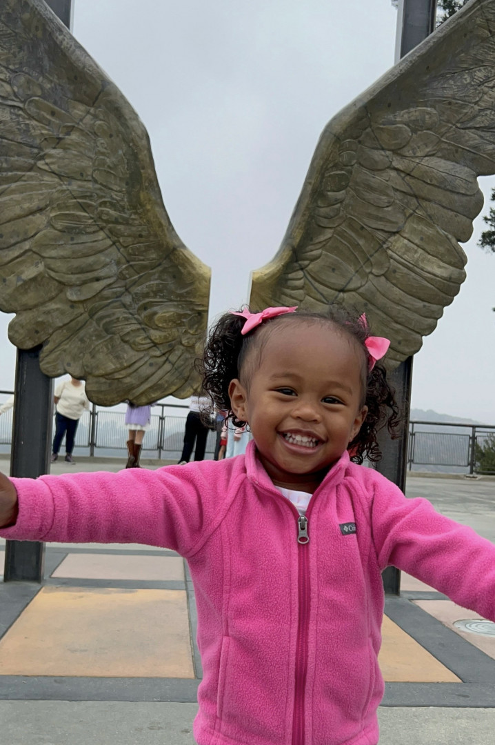 She’s not your average toddler—fiercely independent and wise beyond her years. A morning ray of sunshine with a contagious smile, she brings joy to everyone she meets. Polite and socially fearless, she charms with ease. Sharp-eyed and observant, she learns by watching once, then dives in with fearless determination. A bold, joyful spirit wrapped in a tiny, unstoppable force.