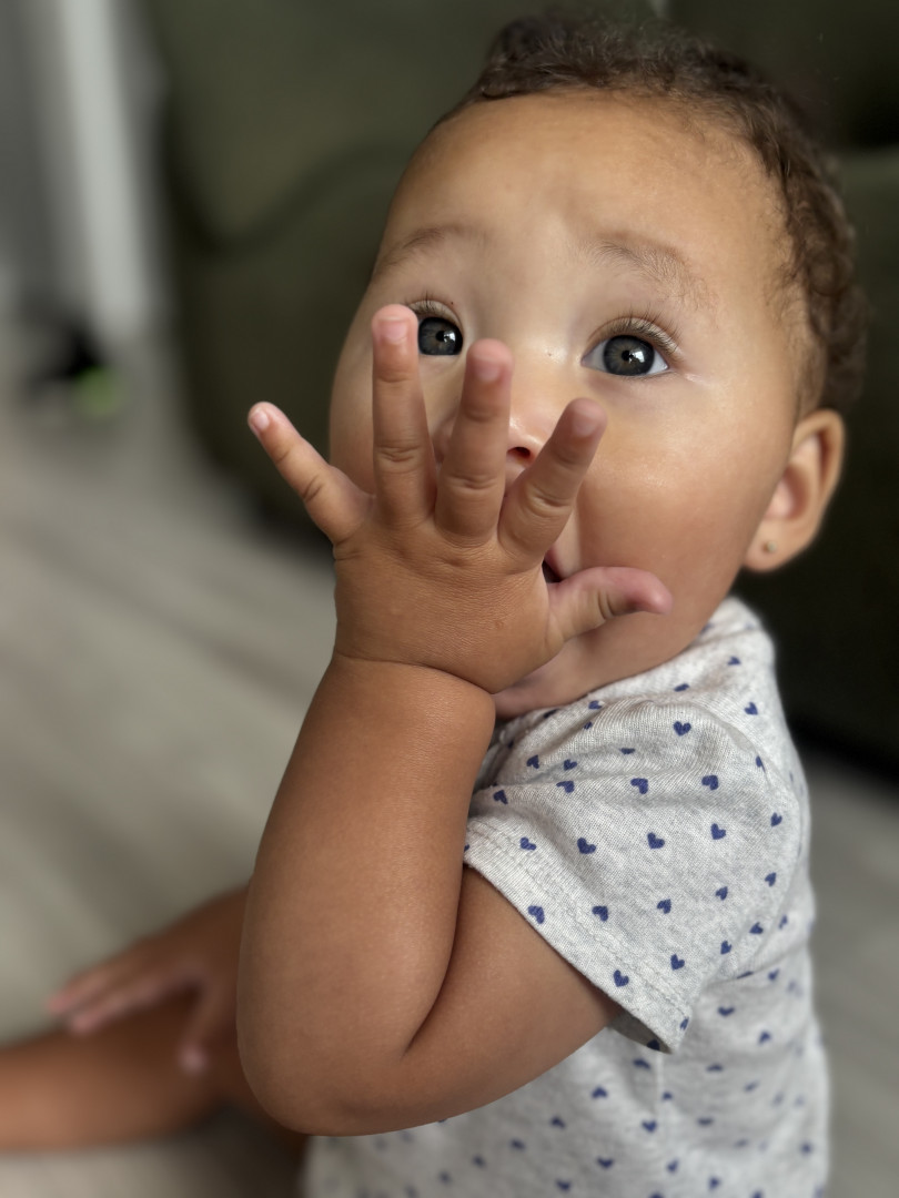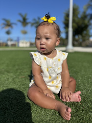 She has the sweetest personality! She’s calm, gentle and observant yet full of so much energy. Her laugh is contagious and her big smiles melt me every time. She loves food and exploring her little world. Though she’s naturally peaceful, her playful side shows she’s going to fun and full of life!