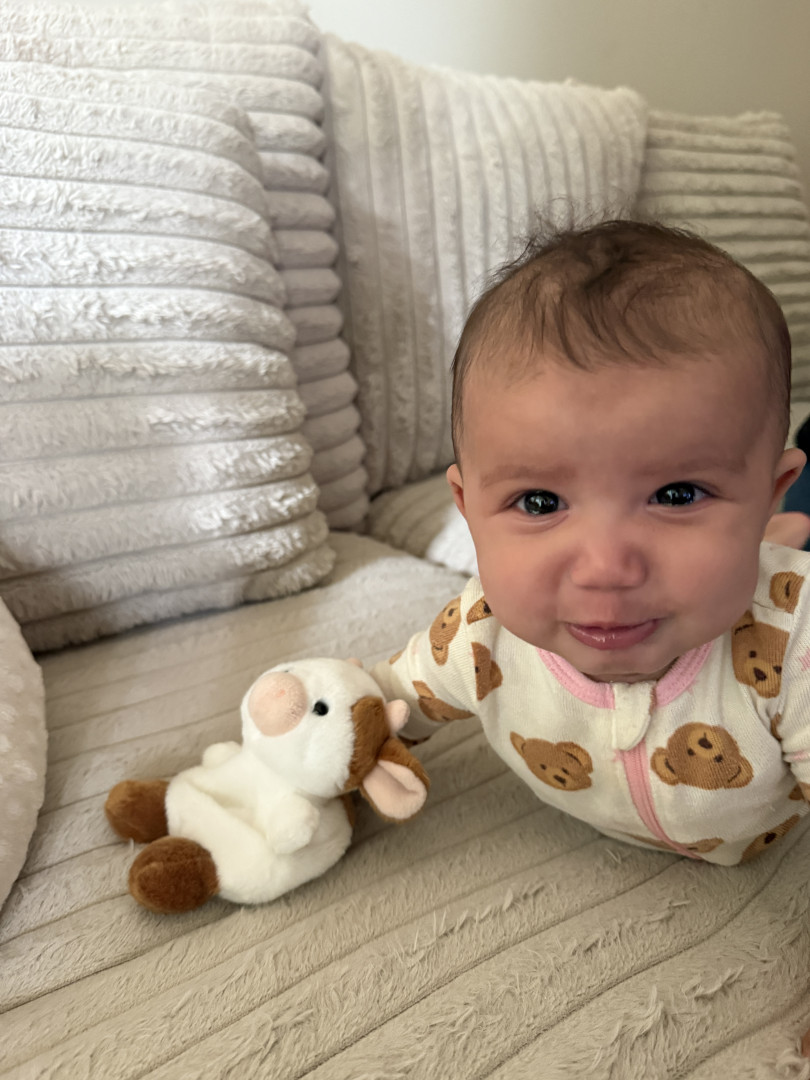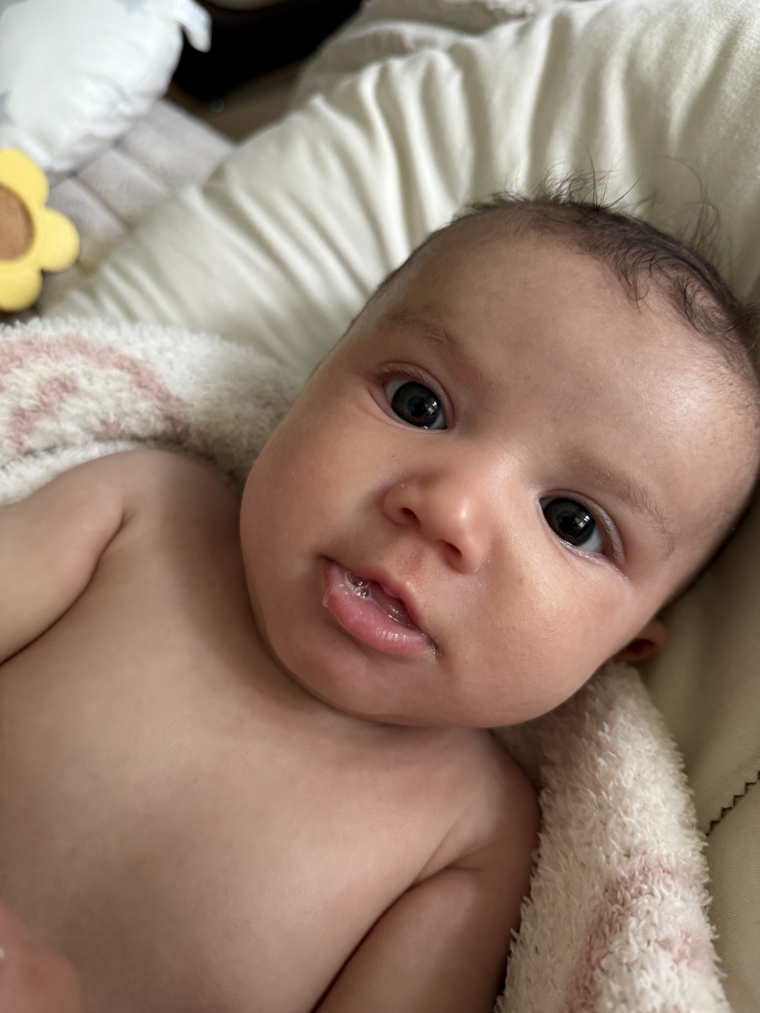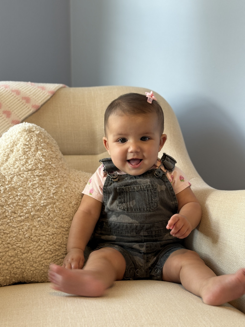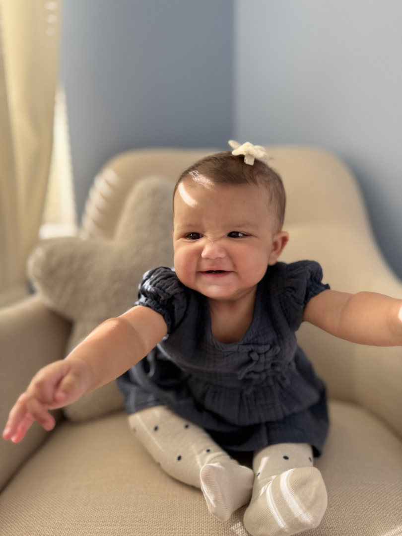 Pia’s personality already shines so brightly. She’s social and outgoing, always eager to flash a smile and charm anyone nearby. Her voice fills the room—she’s loud, talkative, and never shy to share her thoughts in adorable baby babble. Pia loves to cuddle with mom & dad in their bed. She has a vibrant energy, she is very curious about the world, and loves connection. tiny but full of life.