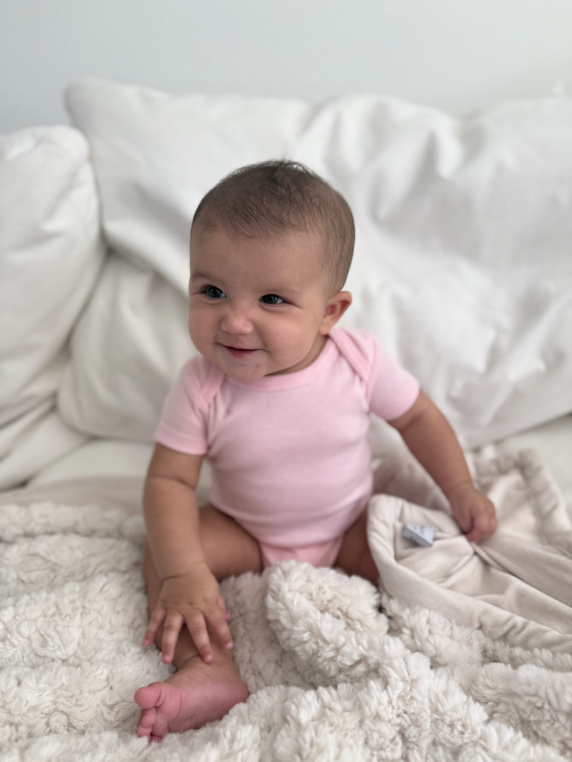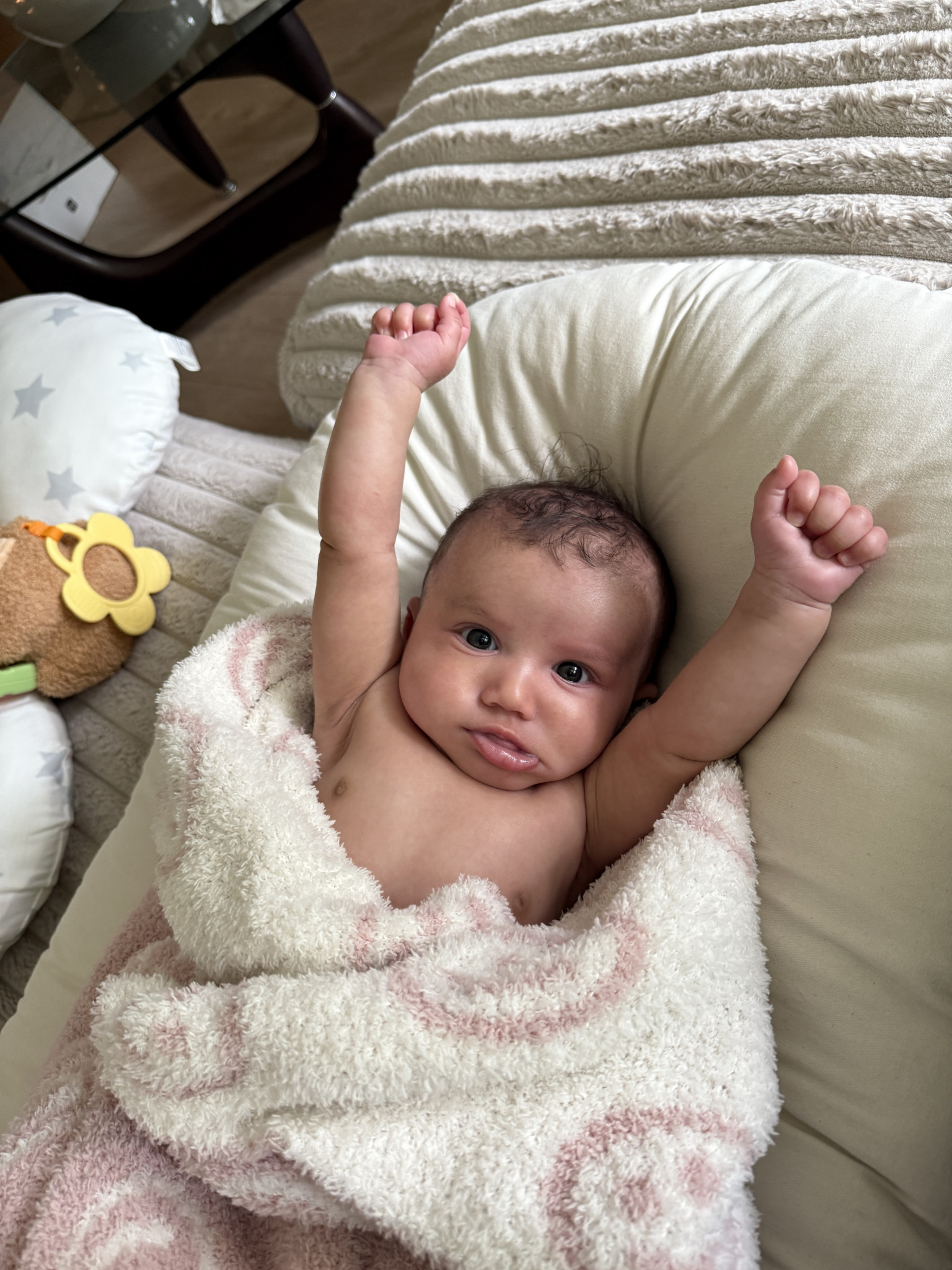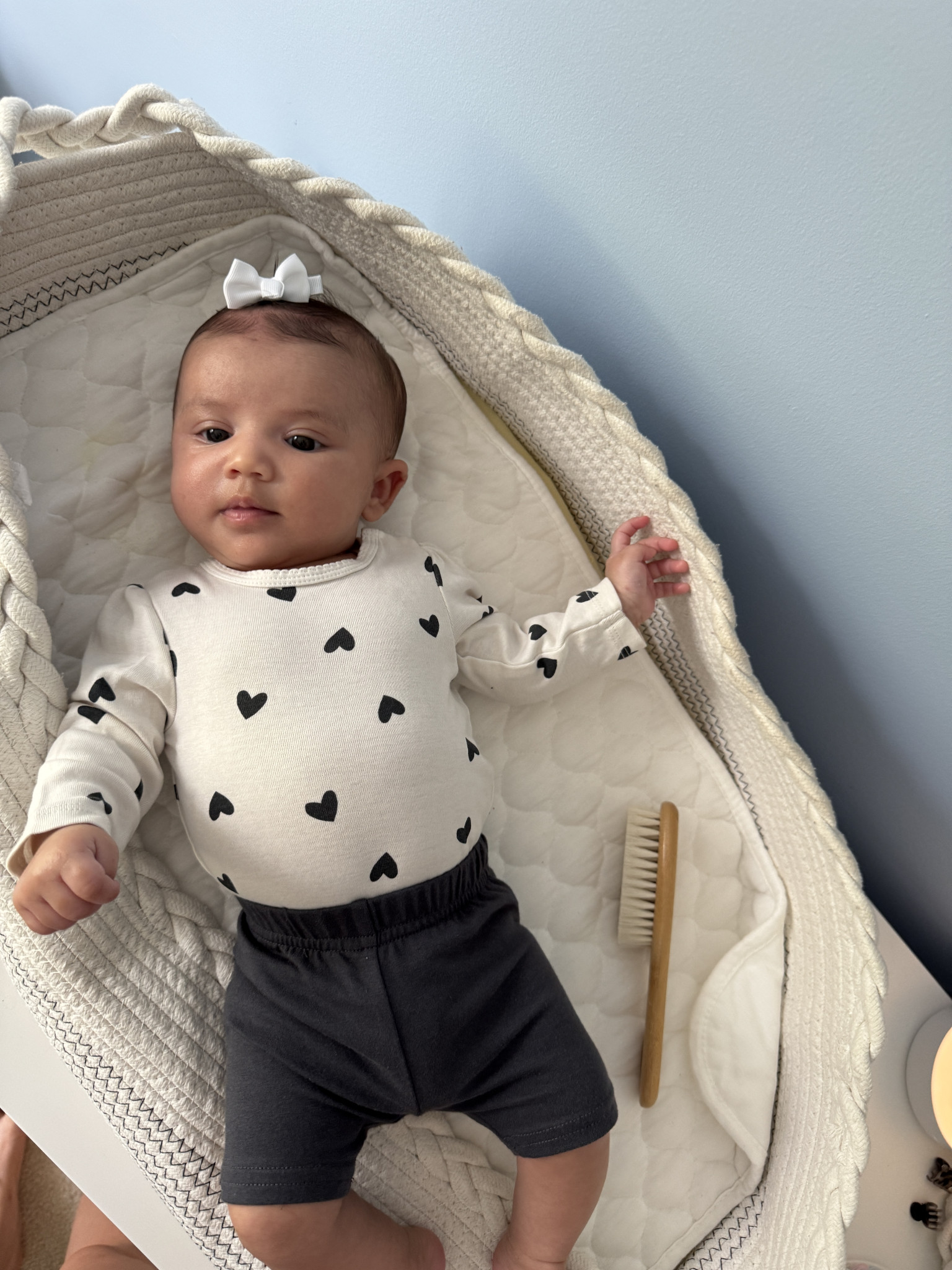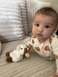 Pia’s personality already shines so brightly. She’s social and outgoing, always eager to flash a smile and charm anyone nearby. Her voice fills the room—she’s loud, talkative, and never shy to share her thoughts in adorable baby babble. Pia loves to cuddle with mom & dad in their bed. She has a vibrant energy, she is very curious about the world, and loves connection. tiny but full of life.