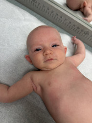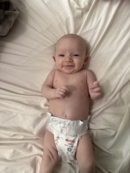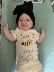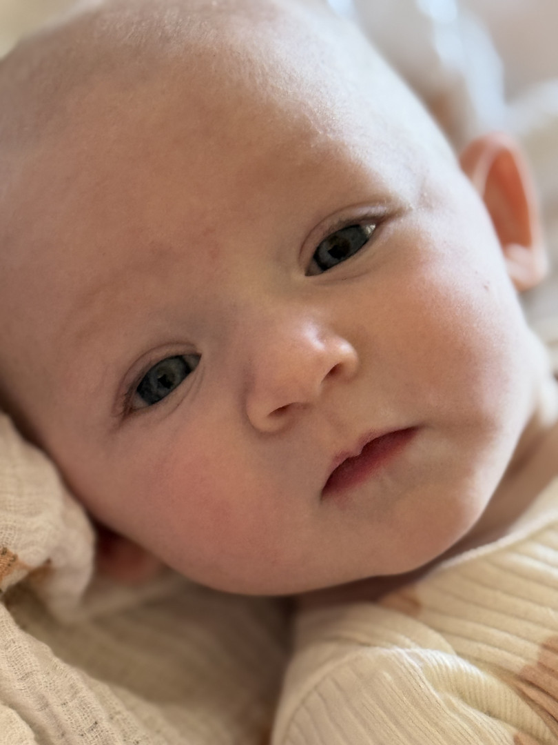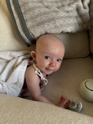 Poppy is as sweet and radiant as the flower she was named after, but she also has a very sassy side. She may not have hair or eyebrows like her brother, but she makes up for it with every “eyebrow” raise, nose furrow, and of course, her blooming smile. She is beginning to giggle, and the smiles she gives just warms your soul. You can even see her smile through her eyes.