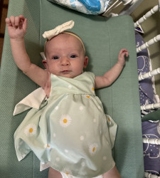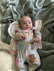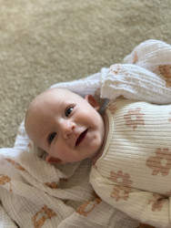 What are Poppy's favorite activities?She is in love with her hands, stinky toes, colorful toys, but most importantly, her big brother Jared. Everyday she is learning something new and being with her mom, dad, and brother gives her happy feet. She loves watching big brother build legos, mow the lawn with dad, and listen to mommy sing.