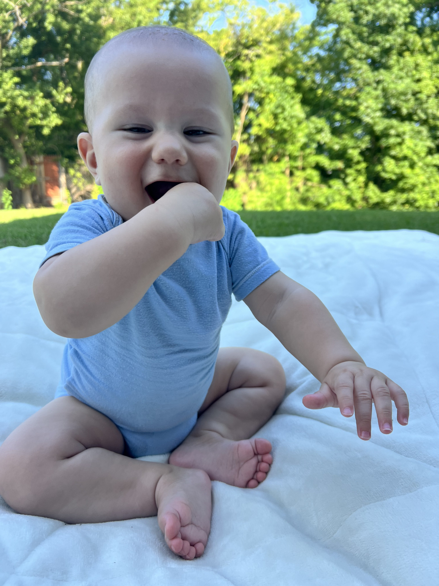 What are Preston's favorite activities?Preston’s favorite activities: splashing in the water, trying to crawl everywhere, chatting up a storm, hanging out with everyone, and eating like a champ!