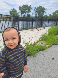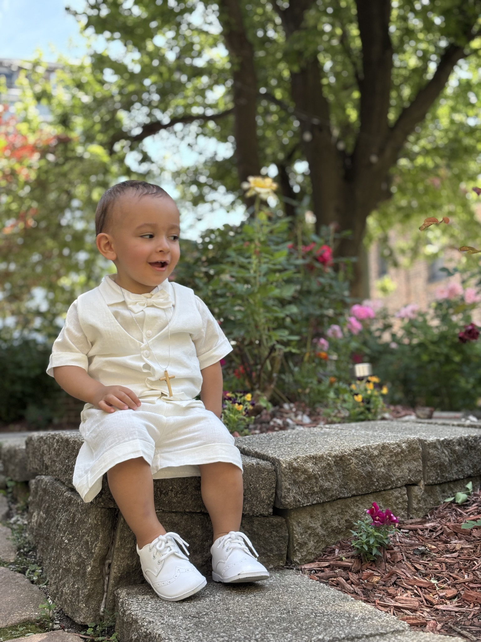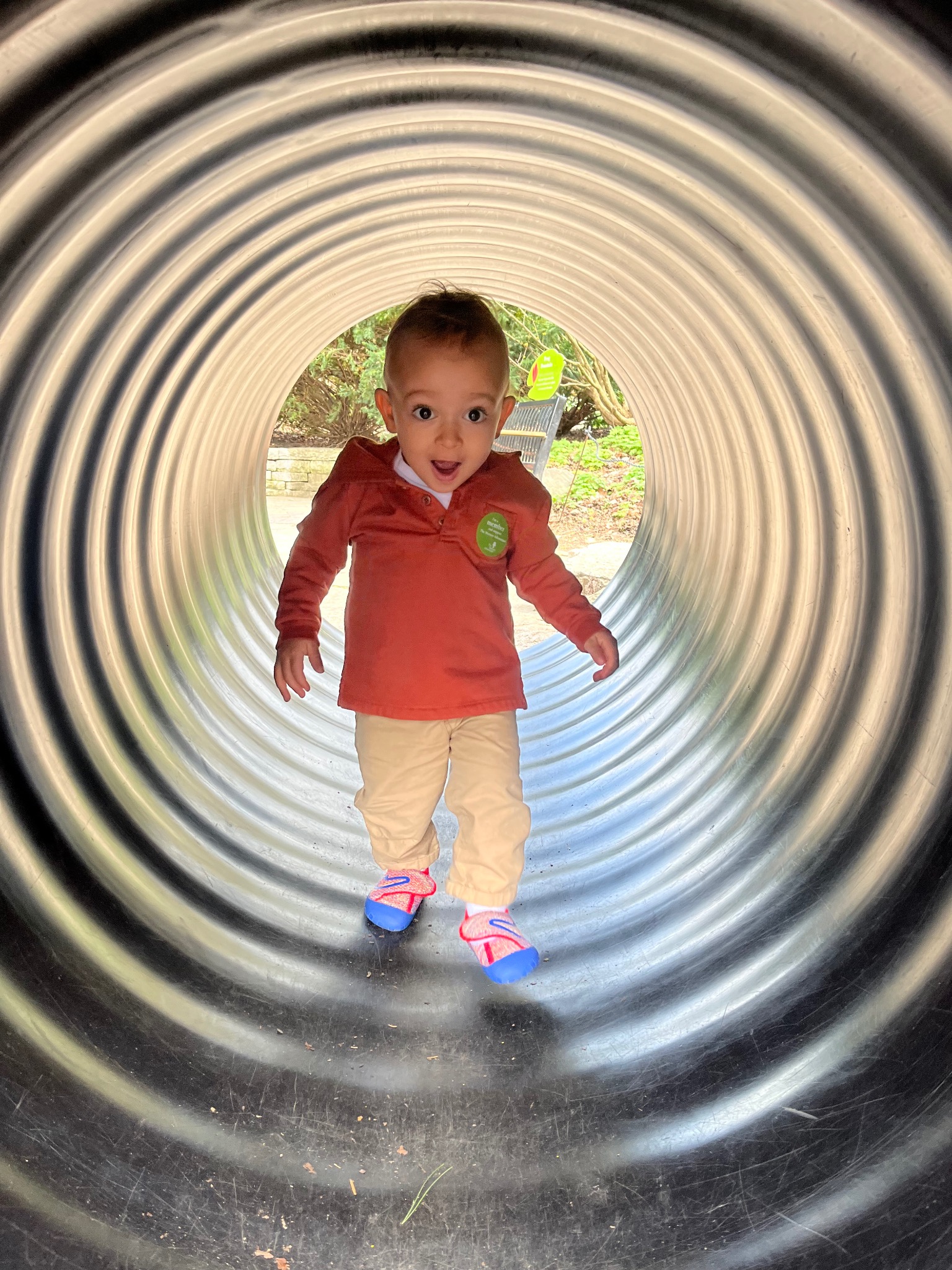 Quinton is quite expressive. As he learns his words, he’ll try to use them to describe the world around him. He’ll groove to some tunes and loves to imitate animals. As he warms up to you, he’ll say “peace” with his 2 little fingers and even says “goo mornin”. When out eating, Quinton likes to shout hi to our server and will make it a point to tell them thank you. You can see his love and sweetness any time he looks at his baby sister.