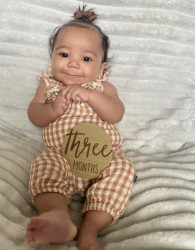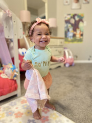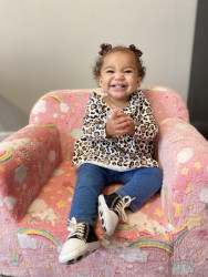 What are Ra'Miyah's favorite activities?Ra’Miyah’s favorite activities include reading books, eating snacks, and taking warm baths. She loves playing outside, especially swinging at the park. Snuggling with her mama and daddy is a must, and she always lights up while watching Bluey, Frozen, or Dora. Whether she’s smiling, exploring, or being silly, she finds her joy one way or another!