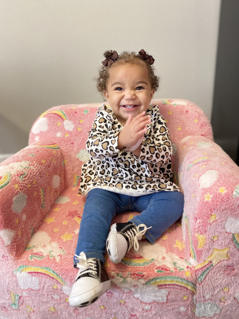 Ra’Miyah is a beautiful mix of independence and curiosity! She’s a smart and silly little girl who loves observing the world around her — definitely a people watcher. While she may be shy at first, she lights up when she’s with her mama and daddy! She enjoys spending time outdoors, especially swimming or playing at the park, and she’s always been drawn to books ( & making plenty of loud, joyful noises while reading them!) Her sweet, playful spirit shines through in everything she does!