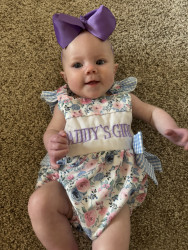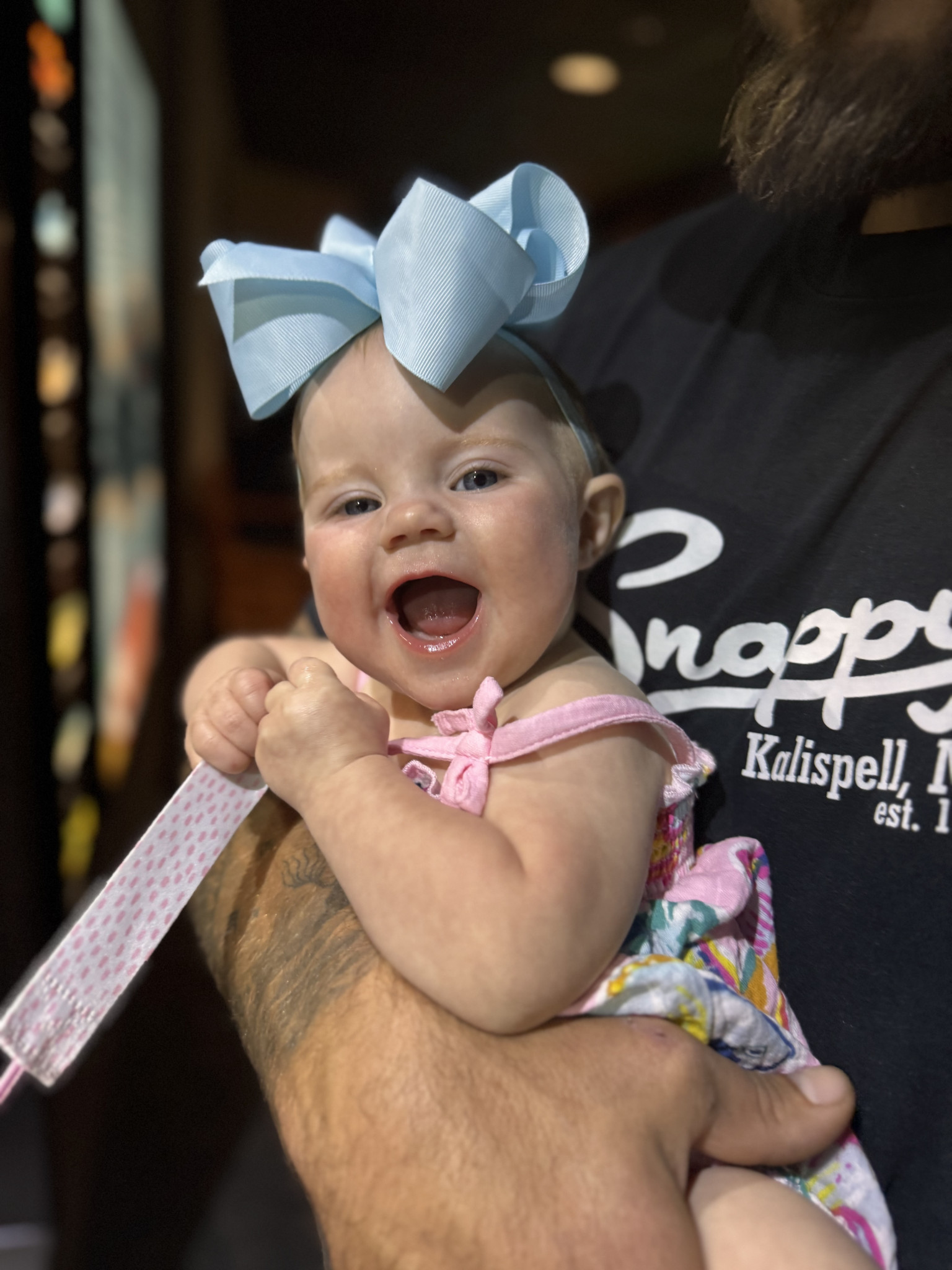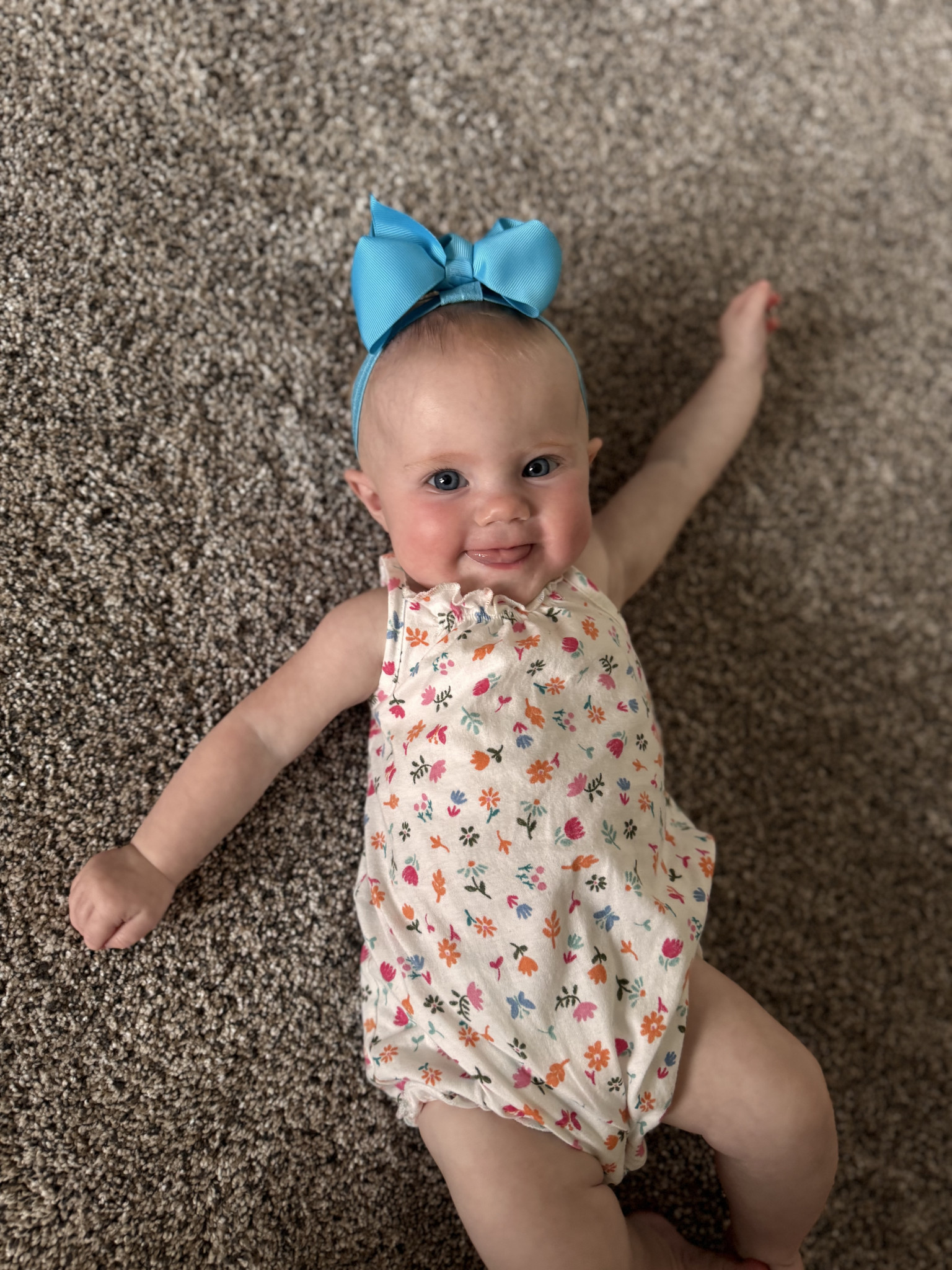 Ramsey has the sweetest personality you could imagine! She loves to laugh the sweetest giggle ever and smile showing off her brand new teeth coming in. Ramsey loves the people closest to her so much and it really shows when she lights up seeing them ❤️