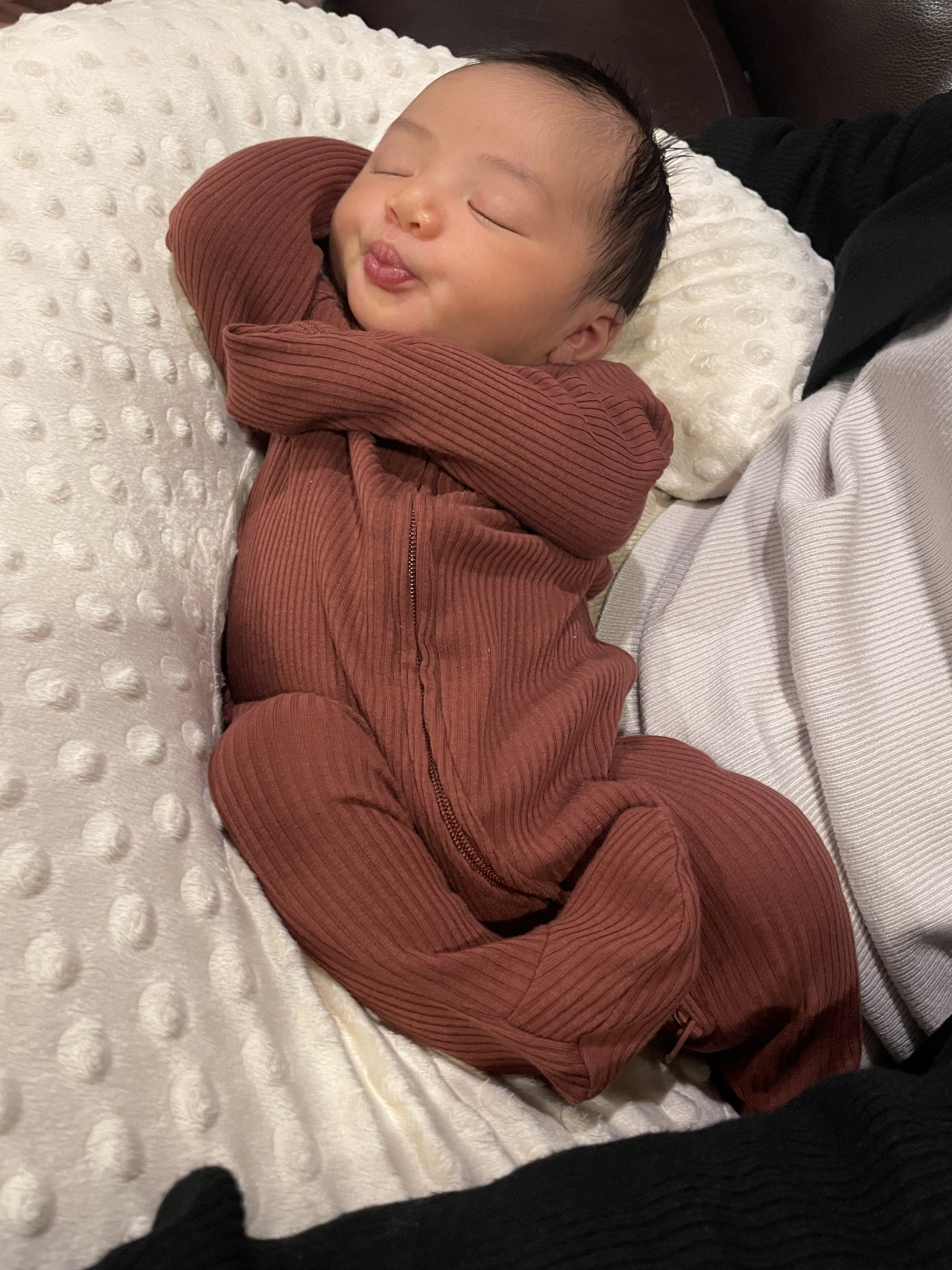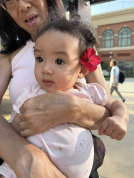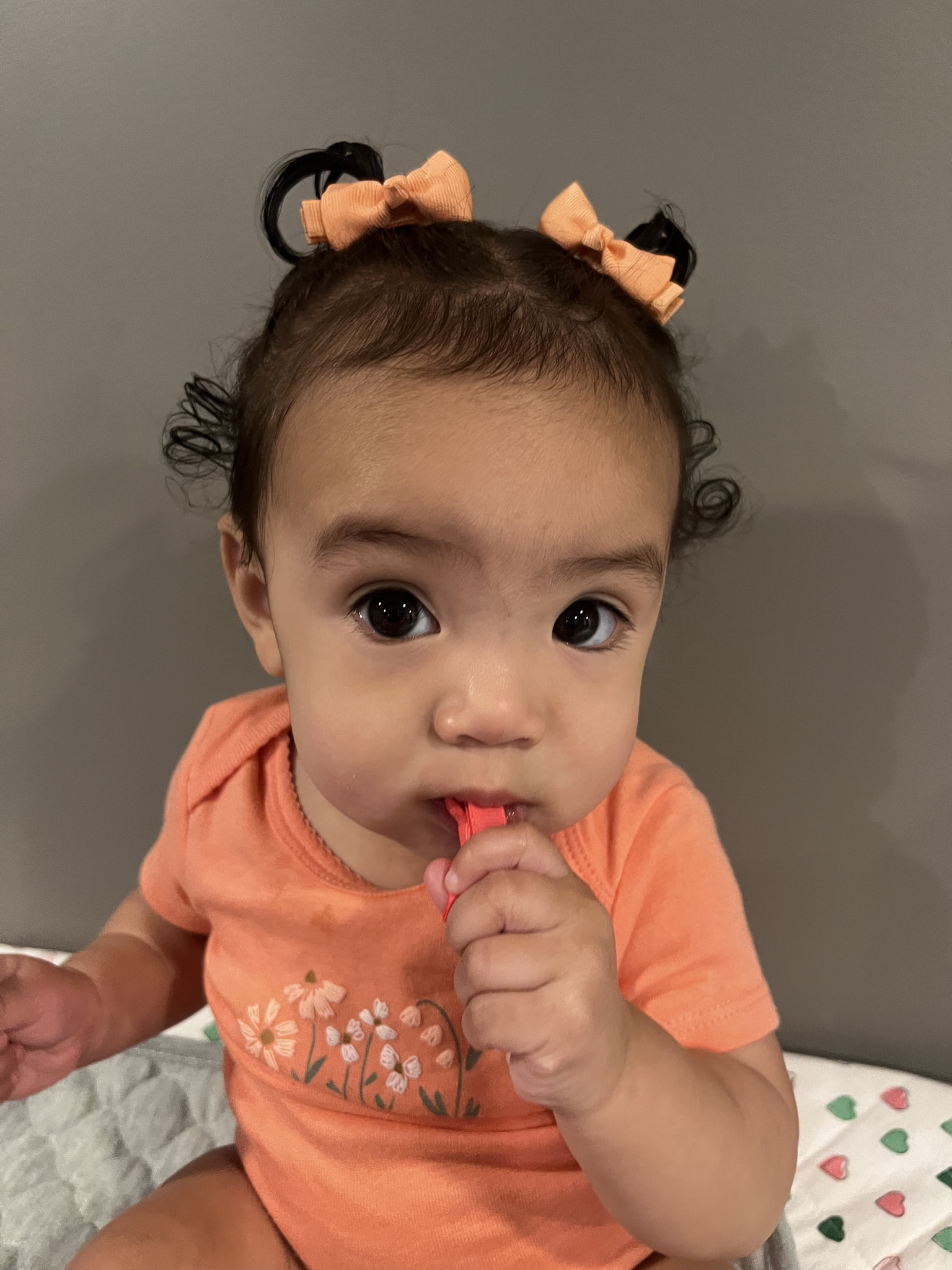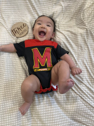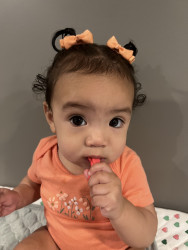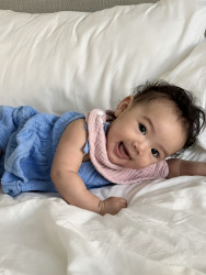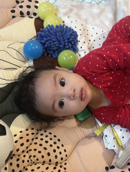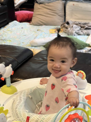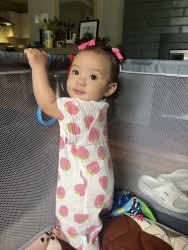 Rayani has such a big personality and is very expressive. If she’s happy, she’ll let out joyful belly laughs, then zoom-crawl over to hug you. She literally gets the zoomies! When upset, she will making grunting noises while looking at you with her head down and eyes up. She is also observant and curious as can be. Rayani is always interested in new faces, places, sights, and sounds!