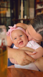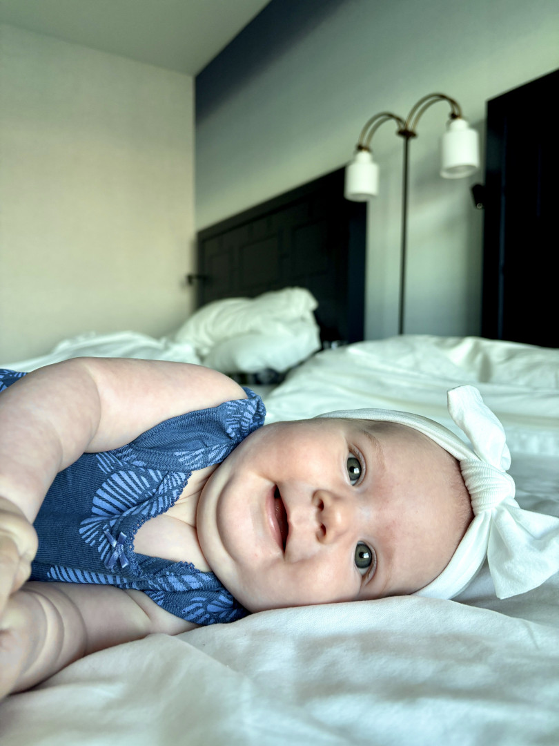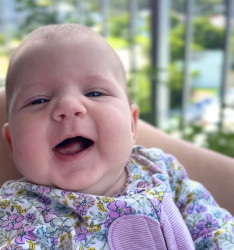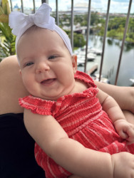 At 4 months, she’s curious, silly, and oh-so lovable. Always ready with a gummy grin or a coo to brighten the day ! She’s already the queen of giggles, drools, and dramatic expressions. Tiny but with a personality that fills the whole room.