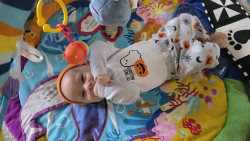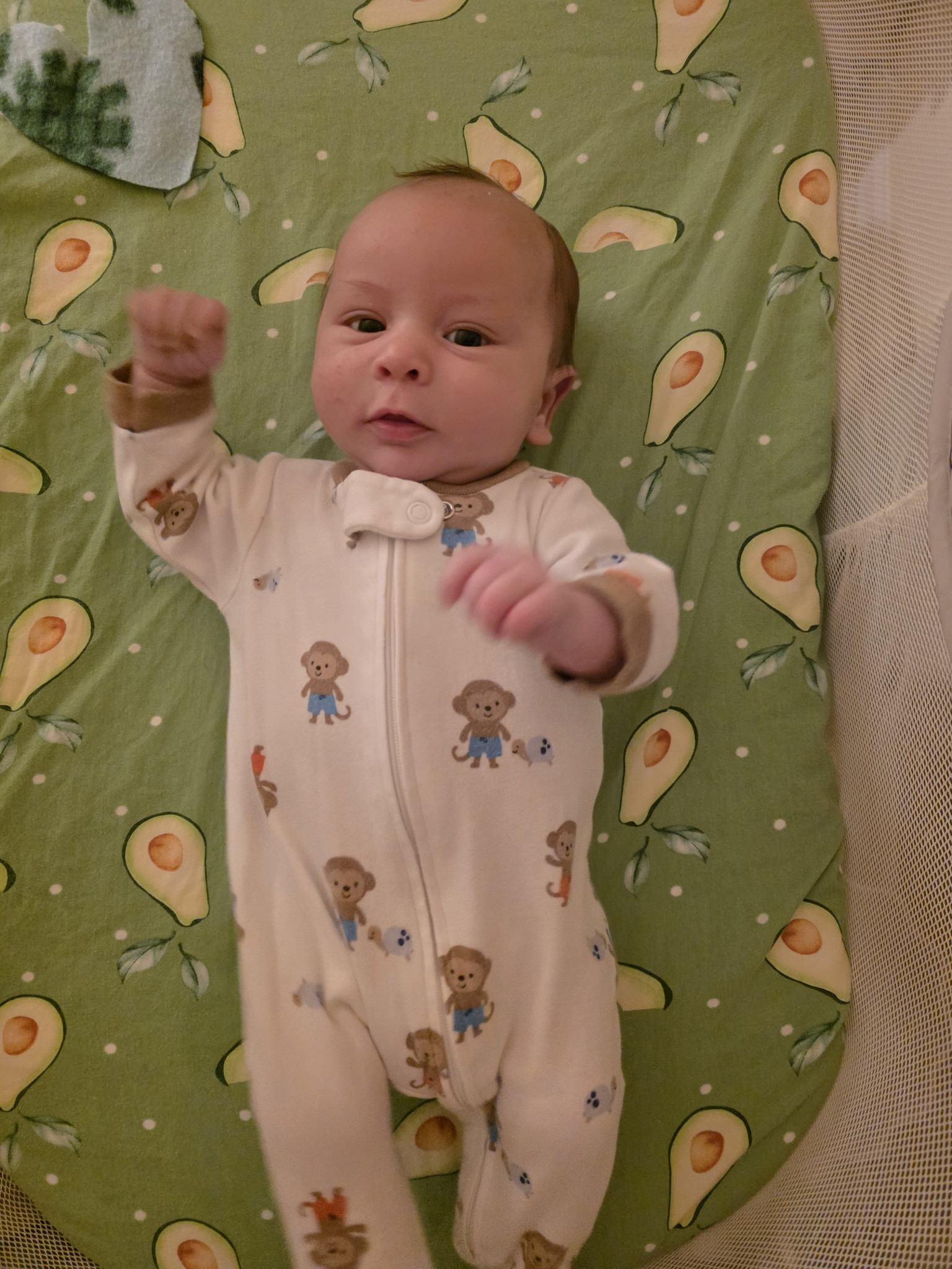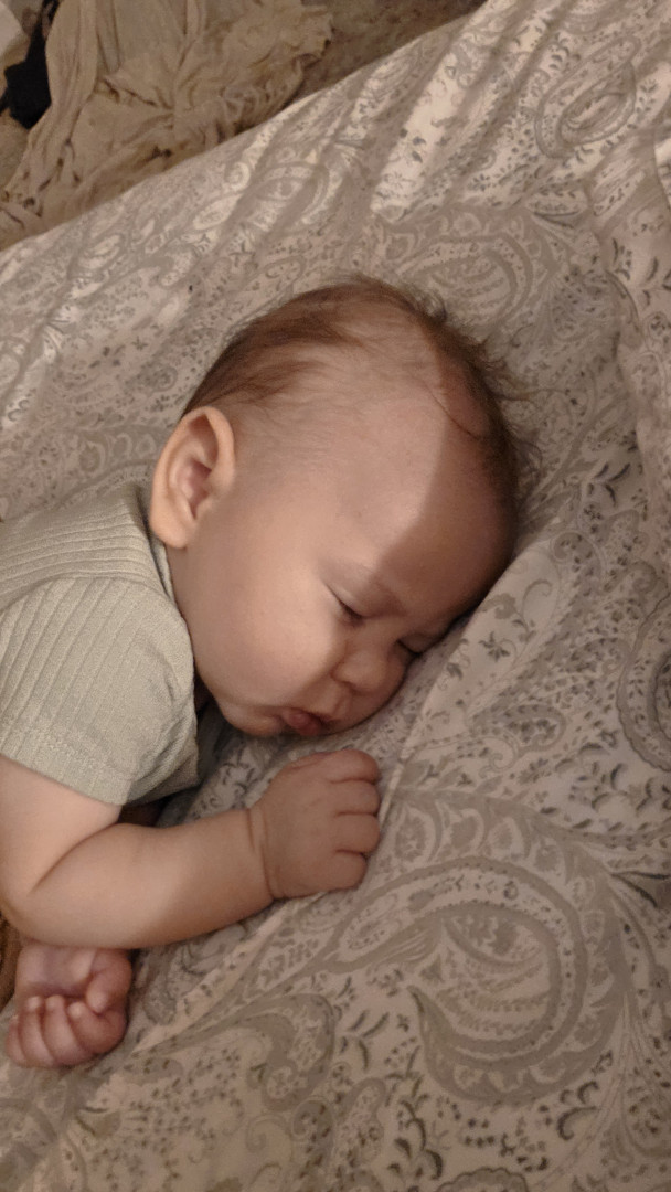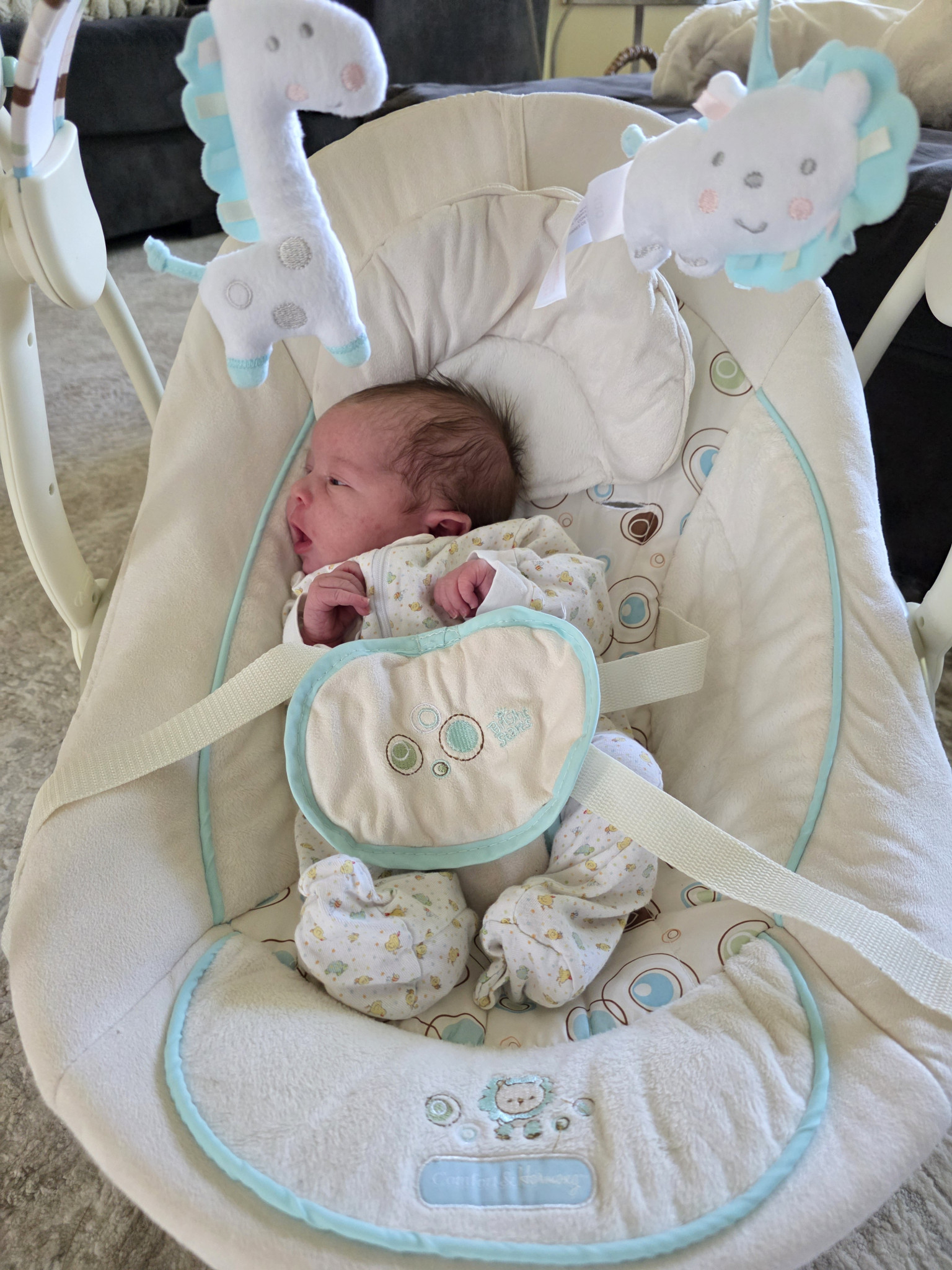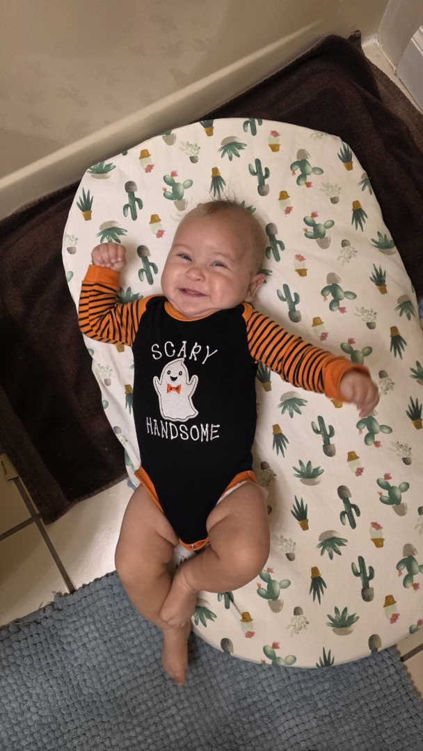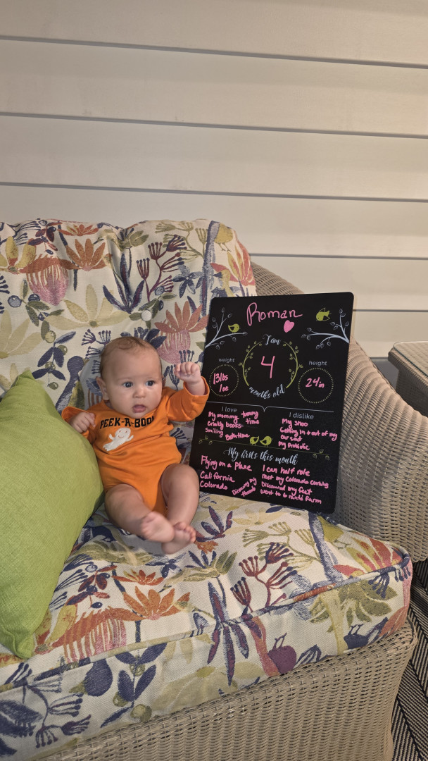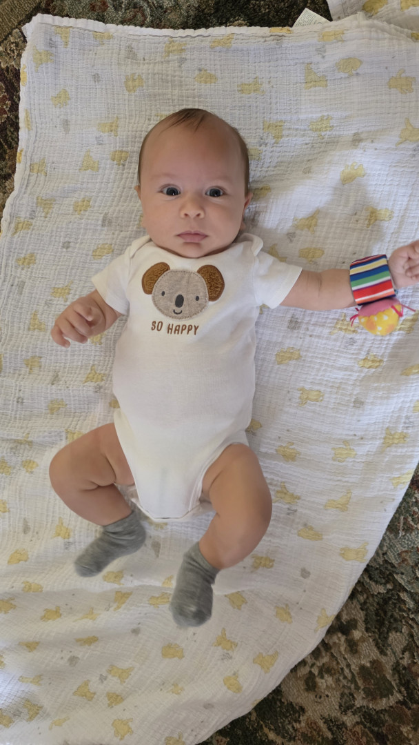 Roman “Romie Bear” may only be 4 months old, but he’s already showing the world how special he is. With expressive eyes full of wonder, he studies everything around him. He loves to “talk” in sweet coos, melting hearts with tiny smiles and curious stares. Whether snuggled like the coziest little bear or stretching with determination, Romie already shines—gentle, strong, and oh-so lovable.