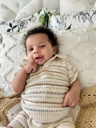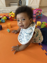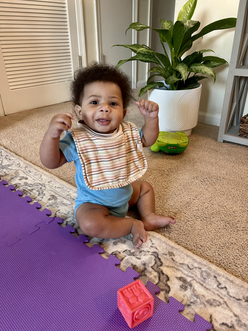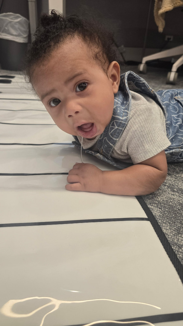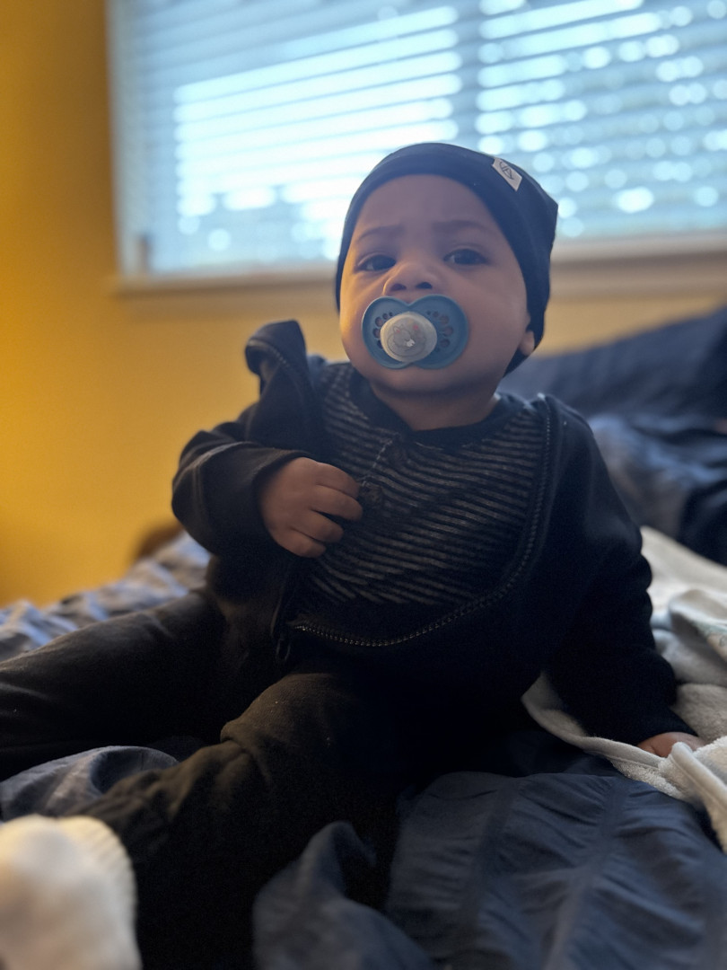 Rowan is 8 months old and already running the house. He came into the world at 9 lbs 14oz and hasn’t stopped making his presence known since. His favorite toy is a slinky (don’t ask us why), he could stare at trees for hours like he’s deep in thought, and he thinks he’s singing along to Sing.. we’re just going with it. He’s super expressive, loves attention, and gives side-eyes that could humble a grown adult. Basically, Rowan is all personality, no filter, and we wouldn’t have it any other way.
