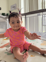 She is a smart little girl. Very curious and funny in her own little way. Sabrina loves to explore and go out with mommy. She is very social and everyone in town loves her!! She always has a smile on her face and she is very loving. She manages to express herself even without words.