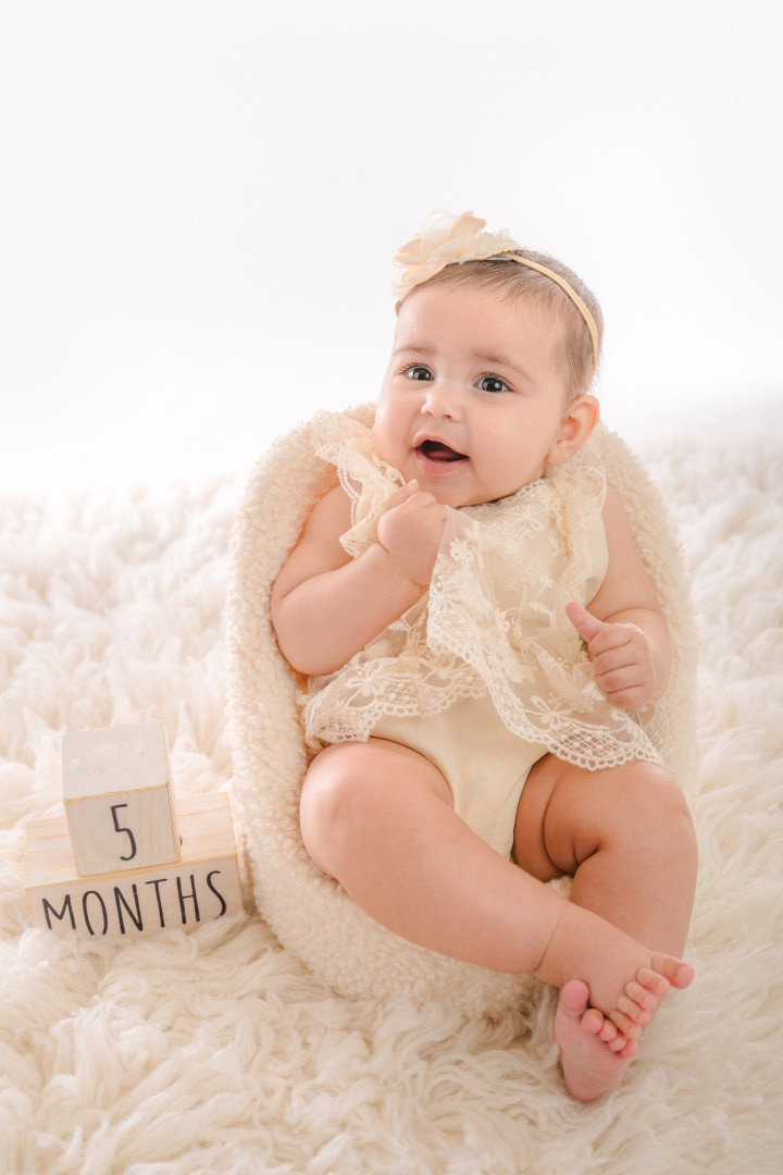 Samara is a little explorer with eyes that sparkle with curiosity. Calm and sweet at heart, yet always wiggling and kicking her feet with joy, she seems to dance her way through babyhood - bringing a perfect blend of peace, play, and wonder to every moment!