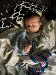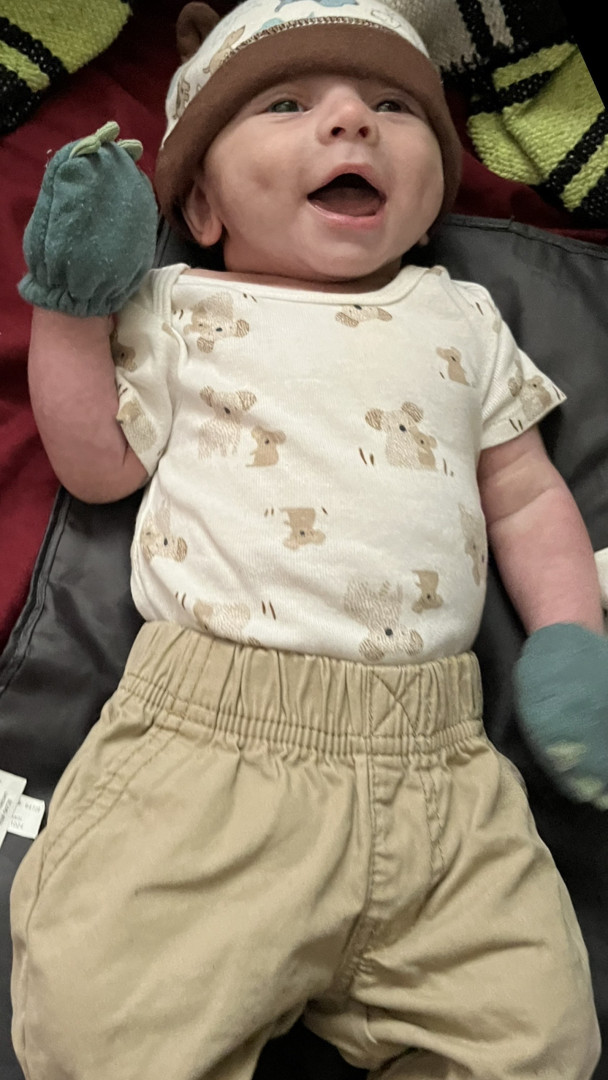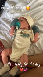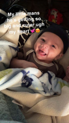 He’s a cuddle bug and definitely a mamas and papas boy. He loves to watch tv and he definitely likes tummy time .