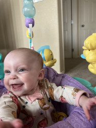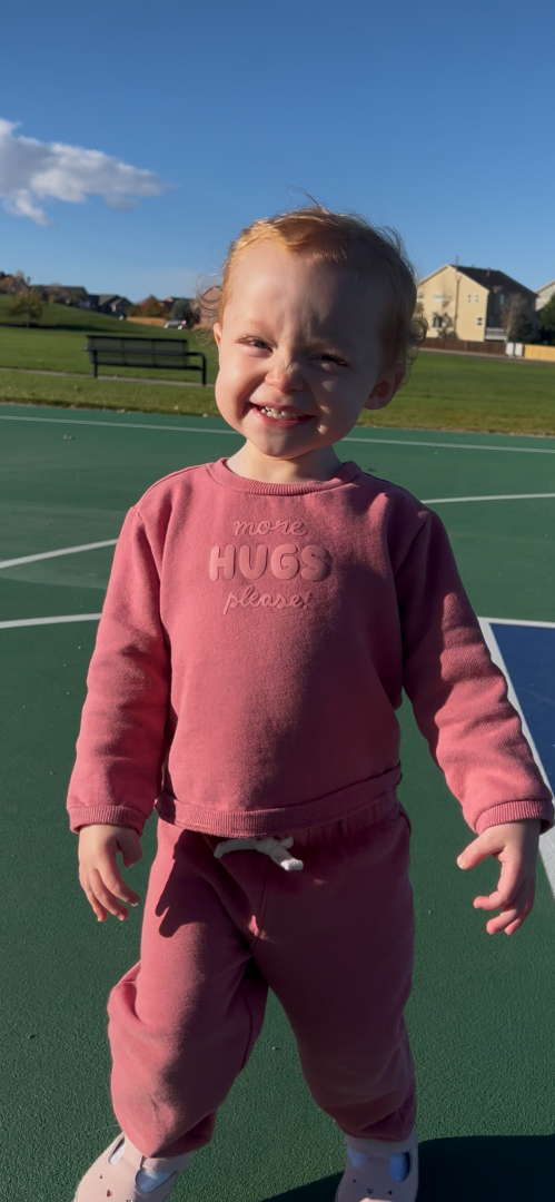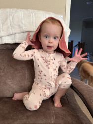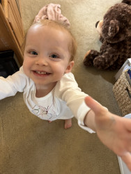 Sarah is a little firecracker! She is so friendly, waving to her besties and perfect strangers everywhere she goes. Sometimes, she can be a little sassy with her communication, rolling her big blue eyes and then laughing. She loves blowing kisses and snuggling with Mama and her blanky.