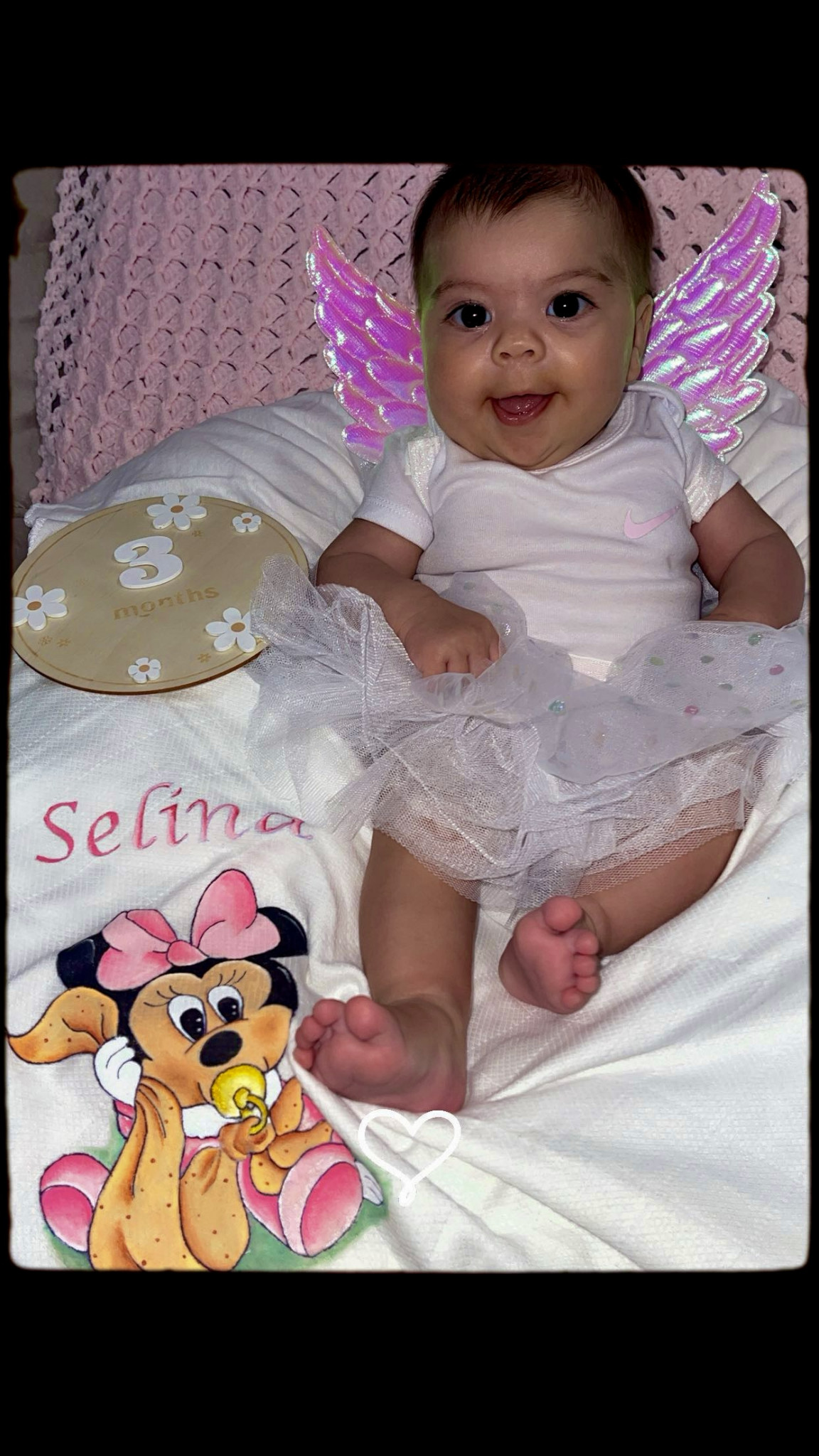 Selina is bubbly smiley baby always friendly with new faces and loves being outside.she also loves her sleep. And absolutely love food of all kinds
