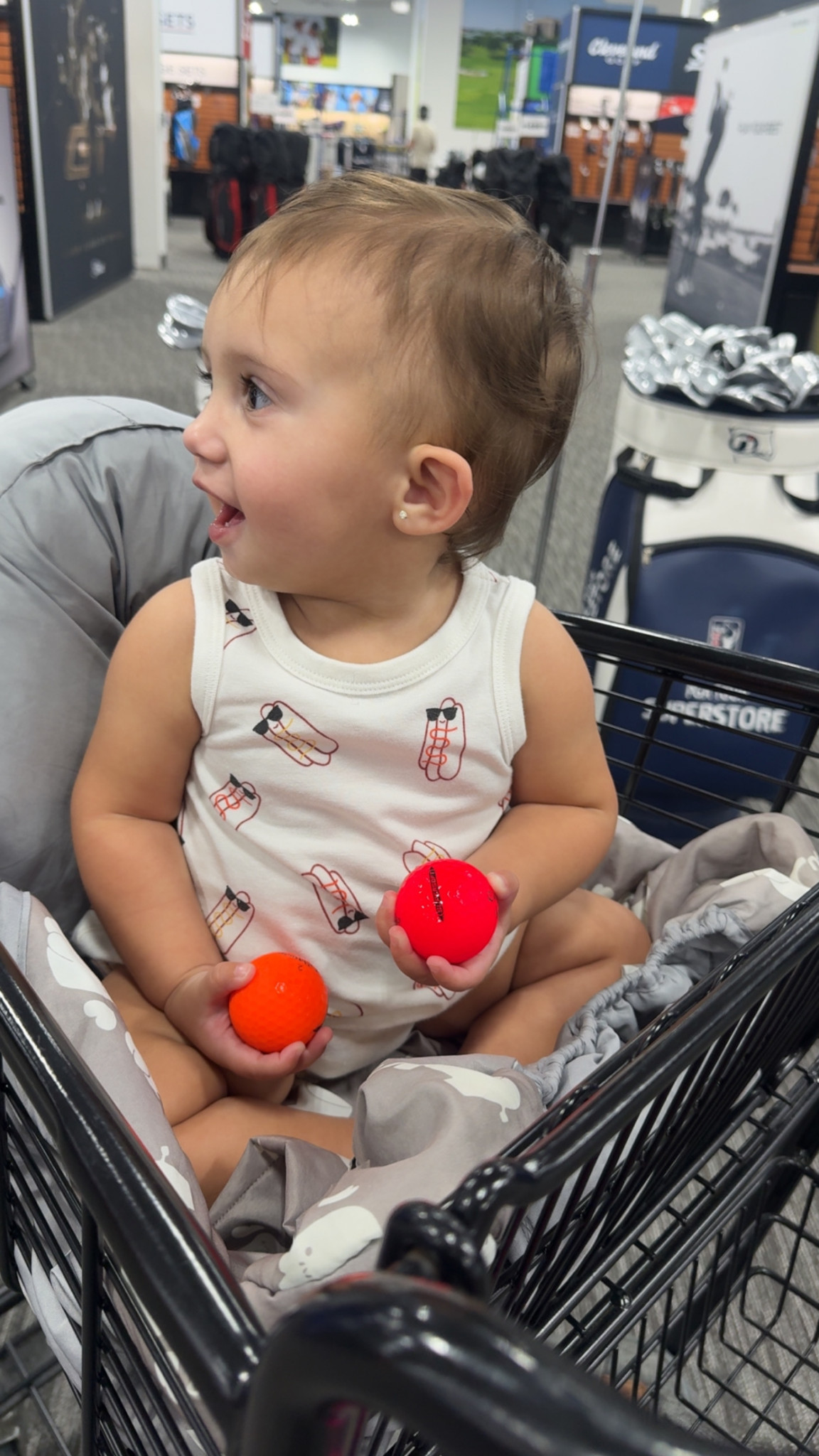 What are Serena's favorite activities?Serena loves watching daddy play golf and thinks the golf balls are hers (lol). She’s a total water baby — swimming, splashing, you name it. This girl could live outside if we let her! Walks and park days are her absolute fave, and she loves trying new foods too.