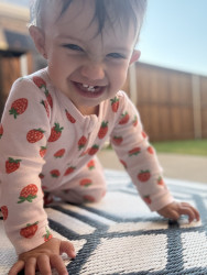 Serena is our smiley, goofy, happy girl who’s always ready for an adventure! She waves at everyone she sees and somehow makes every challenge look easy as she conquers them one by one. She’s mommy’s little helper (especially when the vacuum comes out!) and has totally taken after daddy with her love for golf — golf balls are her favorite toy! Serena is truly the light that brightens any room, and her smile and laugh are completely contagious.