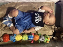 What are Sevyn's favorite activities?His favorite activities are playing his little piano, chewing on his tiny little fingers and just hanging out with mom and dad.