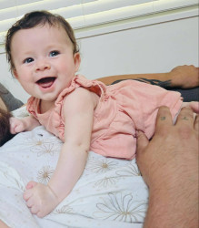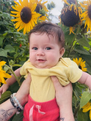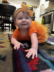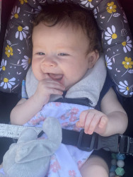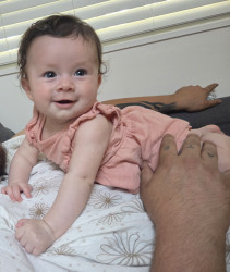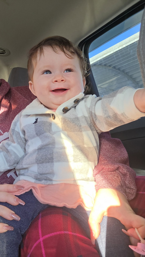 She is a very smiley happy baby! She is very calm and curious and absolutely loves when people come and talk to her and tell her how pretty she is. She loves her parents and siblings and most of all her kitty Toby Beans. Shes always so full of smiles. She is like a little ray if sunshine everytime you look at her. Very rarely fussy. She is extremely smart for her age she makes her family so proud of her everyday. She loves to listen to music and watch her siblings be silly for her.