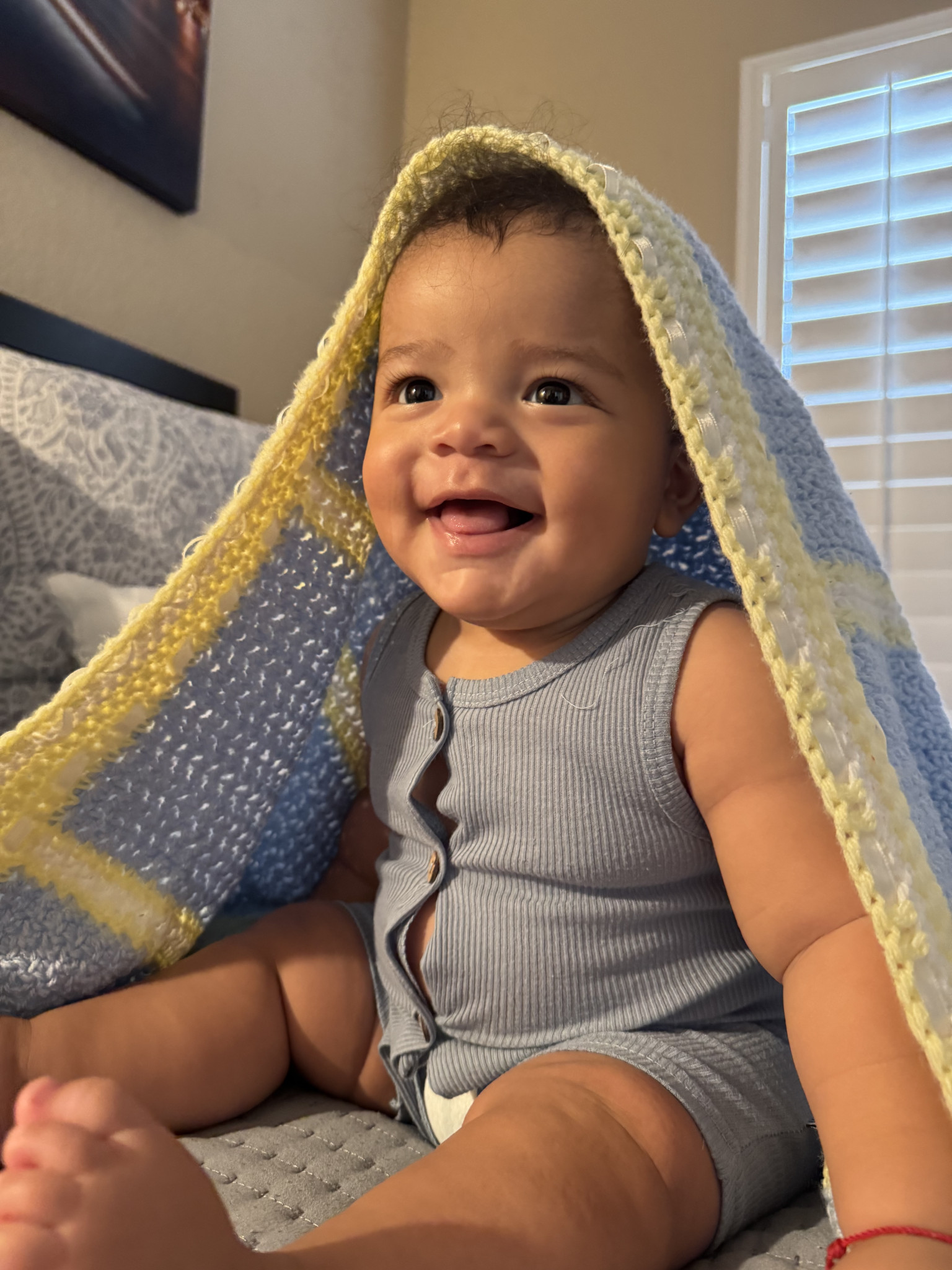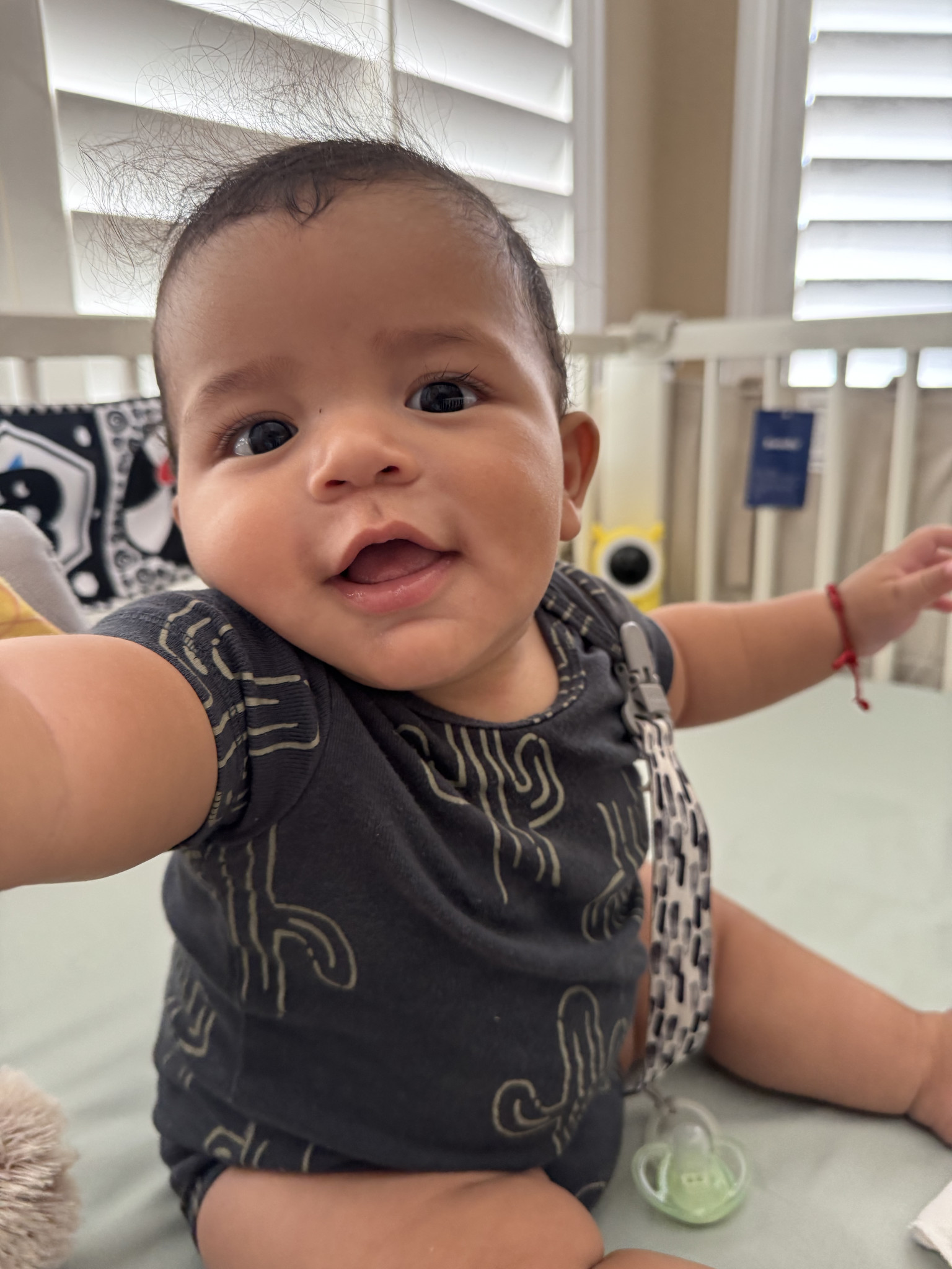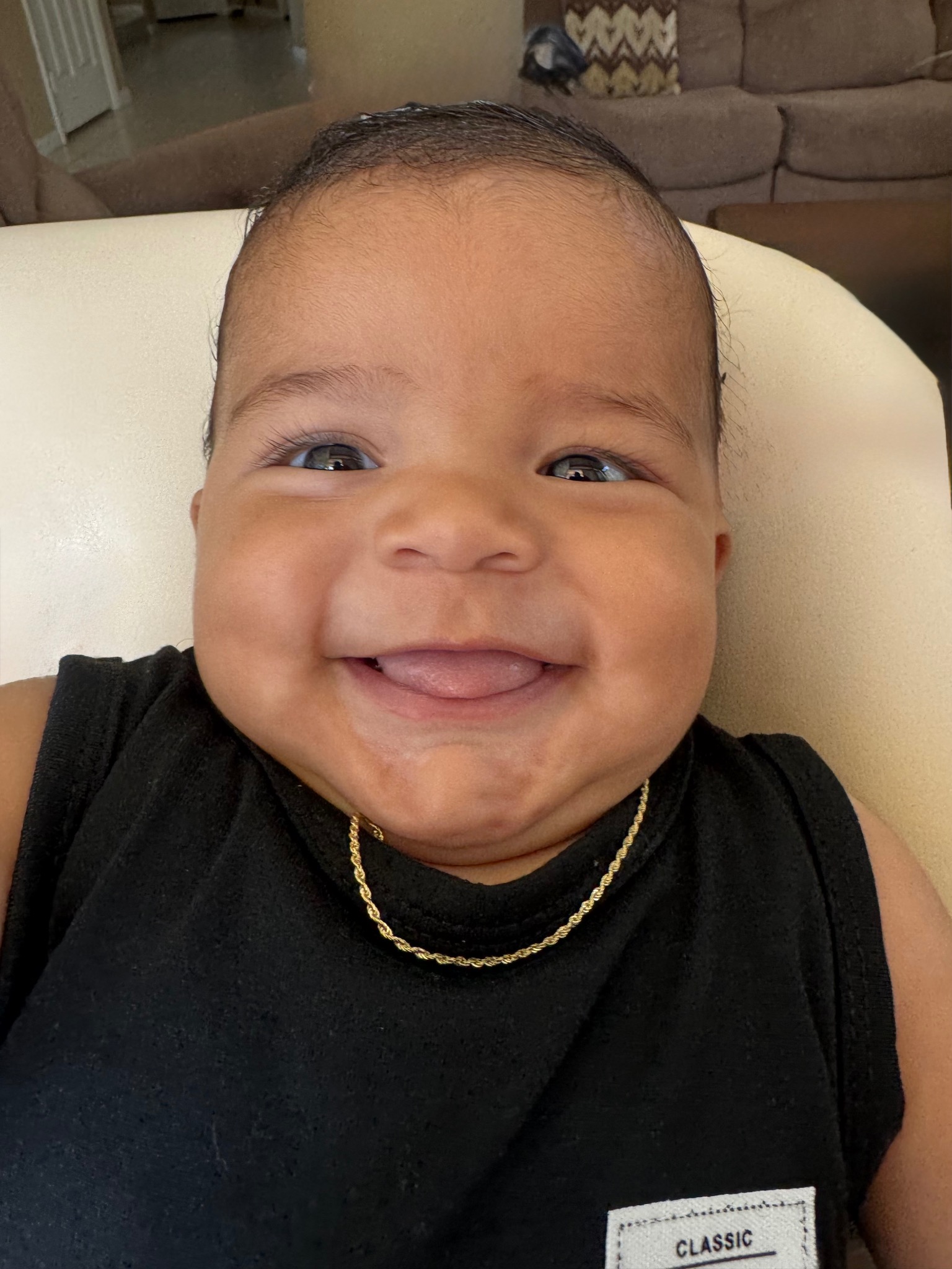 His big bright smile lights up a whole room. He loves all the attention and he make sure u know he’s in the room 😃.