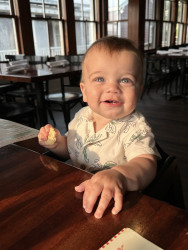 What are Shiloh Johnson's favorite activities?Shiloh loves to climb all over his little climbing set, run around the house collecting things like chargers, remotes, and kitchen cabinet items! He LOVES music and to dance. As soon as he hears a beat he starts to move his little body! His favorite thing right now is to ride his power wheels truck (you’ll see in his photos). He also loves swimming in the pool with his nana and papa! He enjoys throwing the ball for his puppy Oakley, and riding around in his wagon outside!