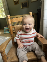 Shiloh just turned one and his personality is really shining through these days. He loves to hug and has just started to give kisses! He does a little “fake laugh” that is hilarious and sure to make everyone around him REALLY laugh! He loves to run around & is curious about EVERYTHING. His favorite people are mom, dad, and papa is a close second. Everyone who meets him always comments on how happy he is. He is spunky, sweet, silly, and very smart!