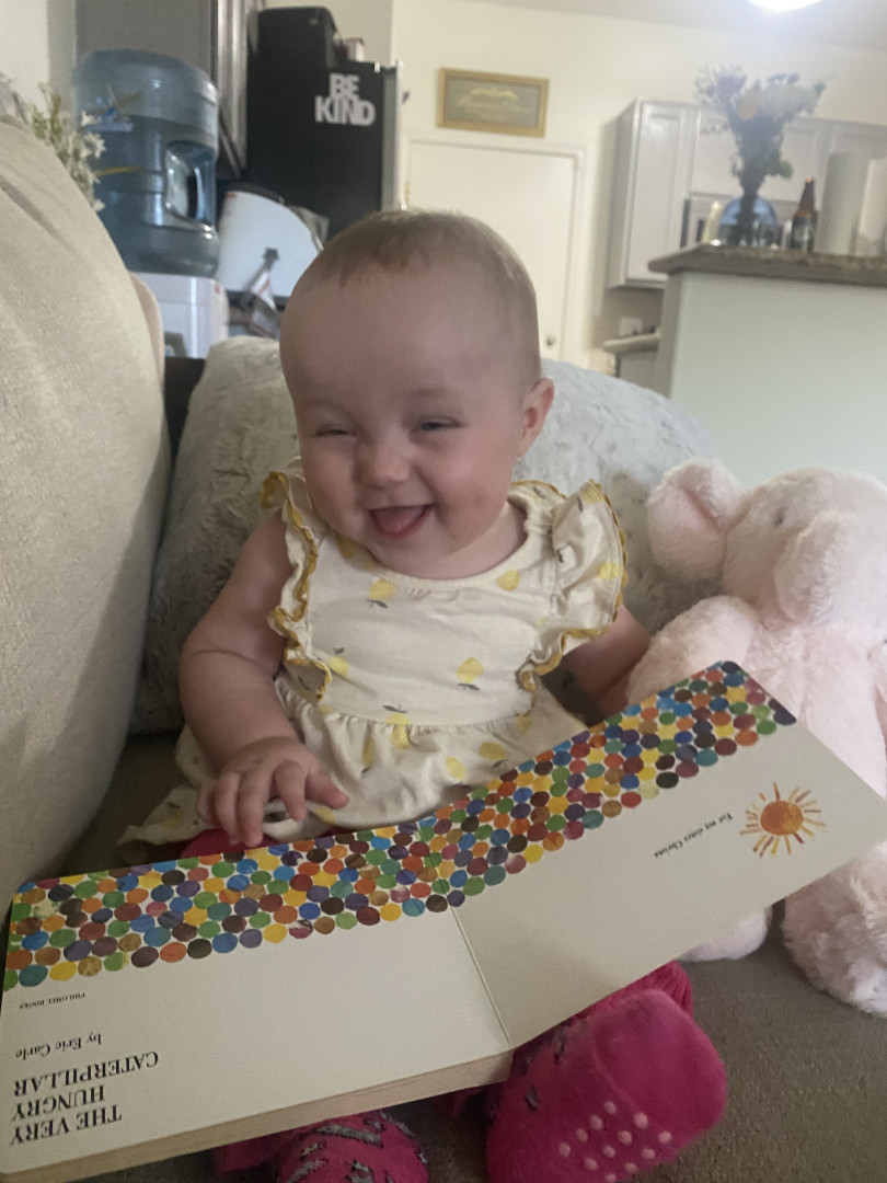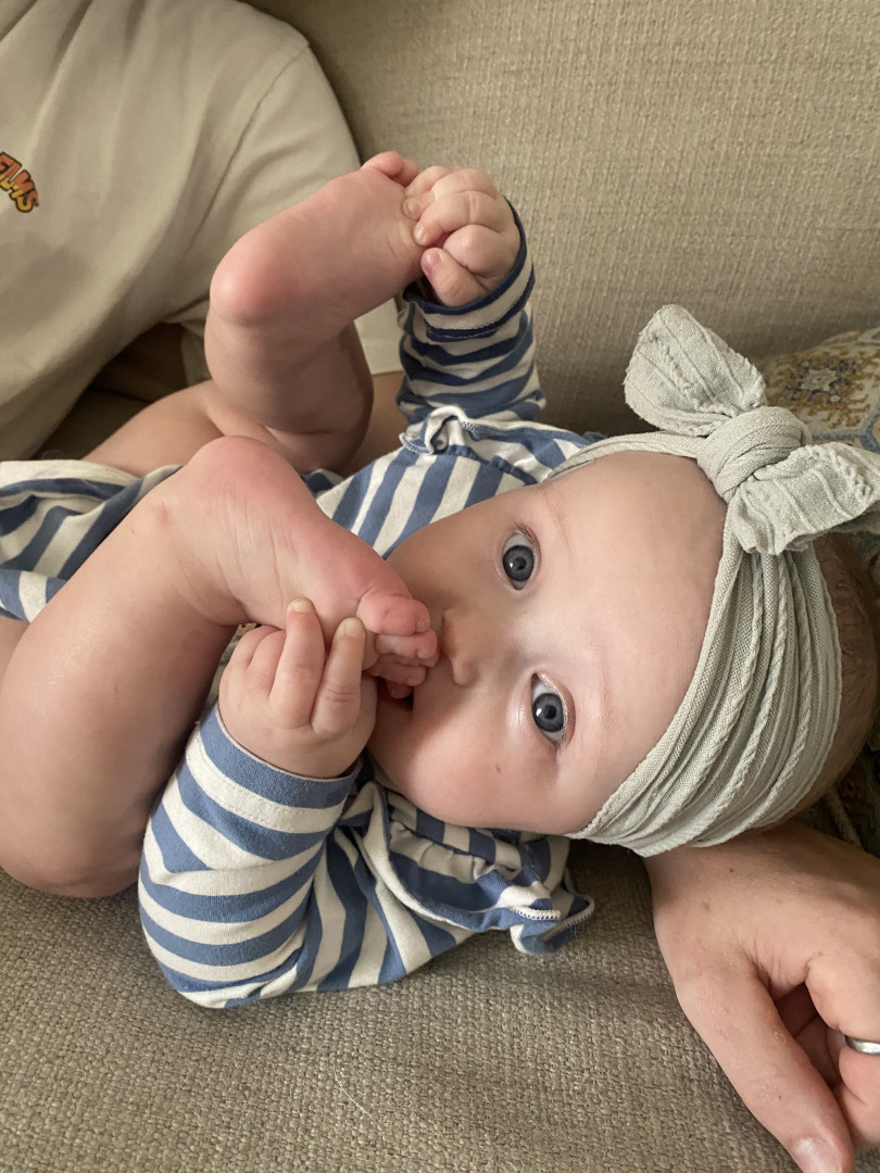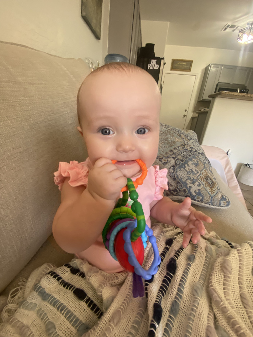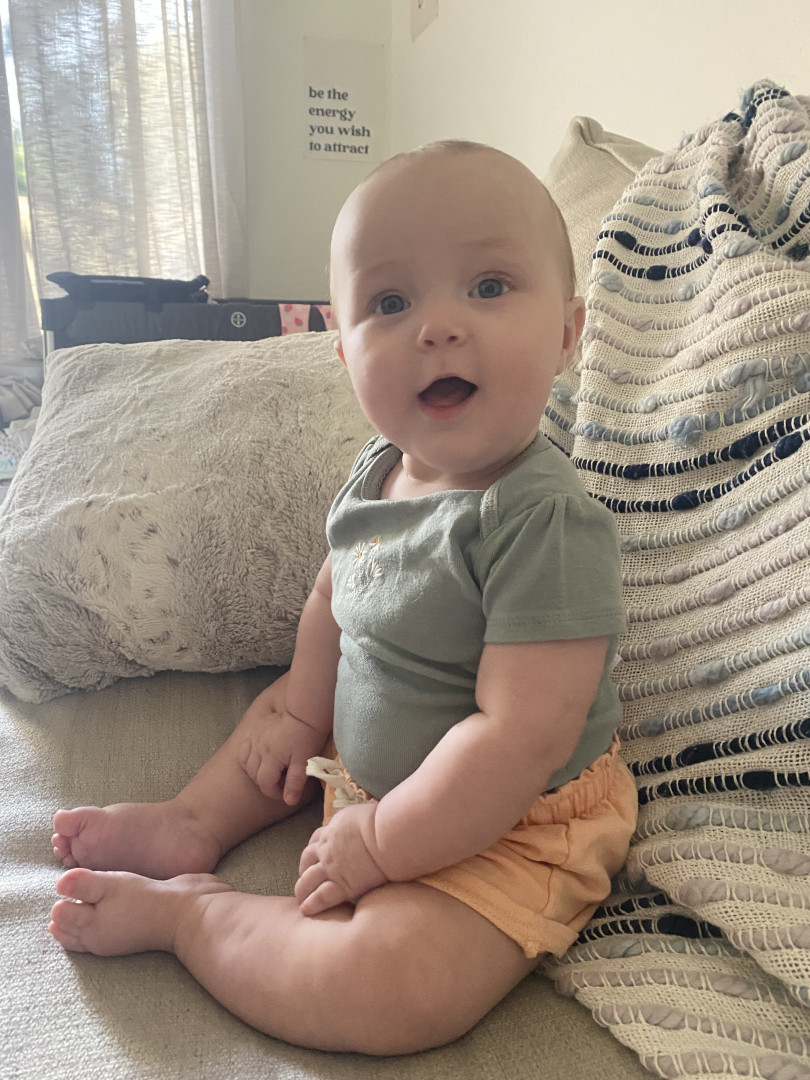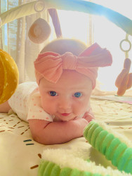 What are Silver's favorite activities?Silver loves tummy time so much, especially turning herself in circles. Lately she has loved her little balance table, it’s been helping her learn how to stand so well!! Sitting up is also a new skill she’s enjoying, then putting everything in her mouth! She loves turning the pages of her books, and cooing to her stuffed animals. Finally she loves a good bottle, always lights up when she sees it, even if she’s upset.