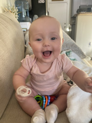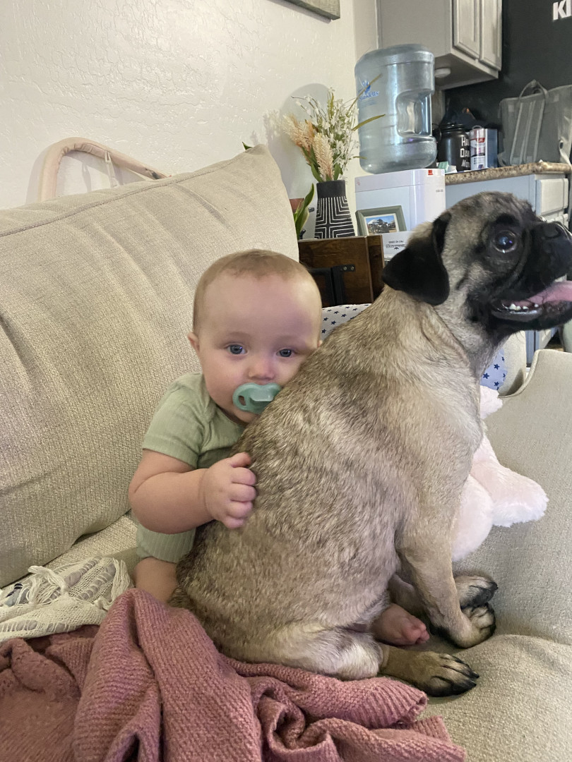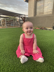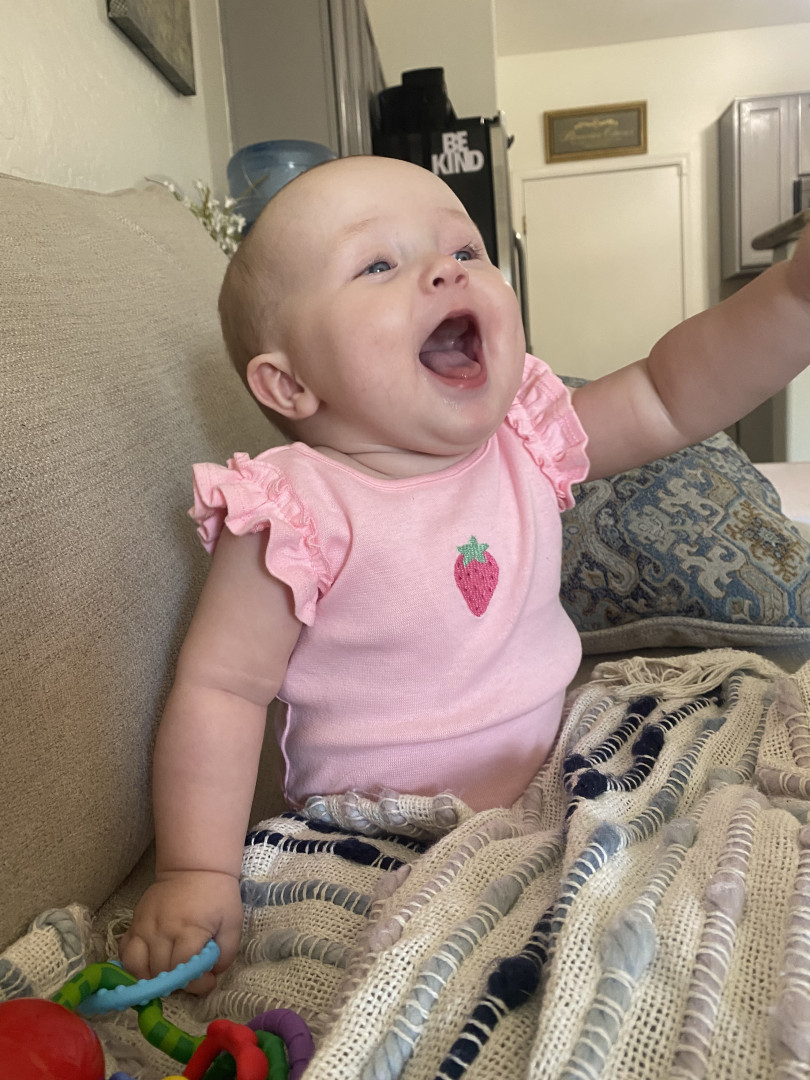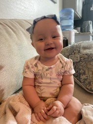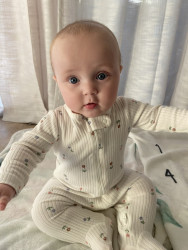 Silver is so happy, all you have to do is look at her for a big smile to make your day! She loves dogs more than anything, always reaching out to pet ours, and is so curious about the world. However, she hates sleeping because she’s much rather be hanging out and squealing at you! She’s just the best baby, so content and beautiful!