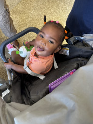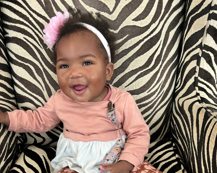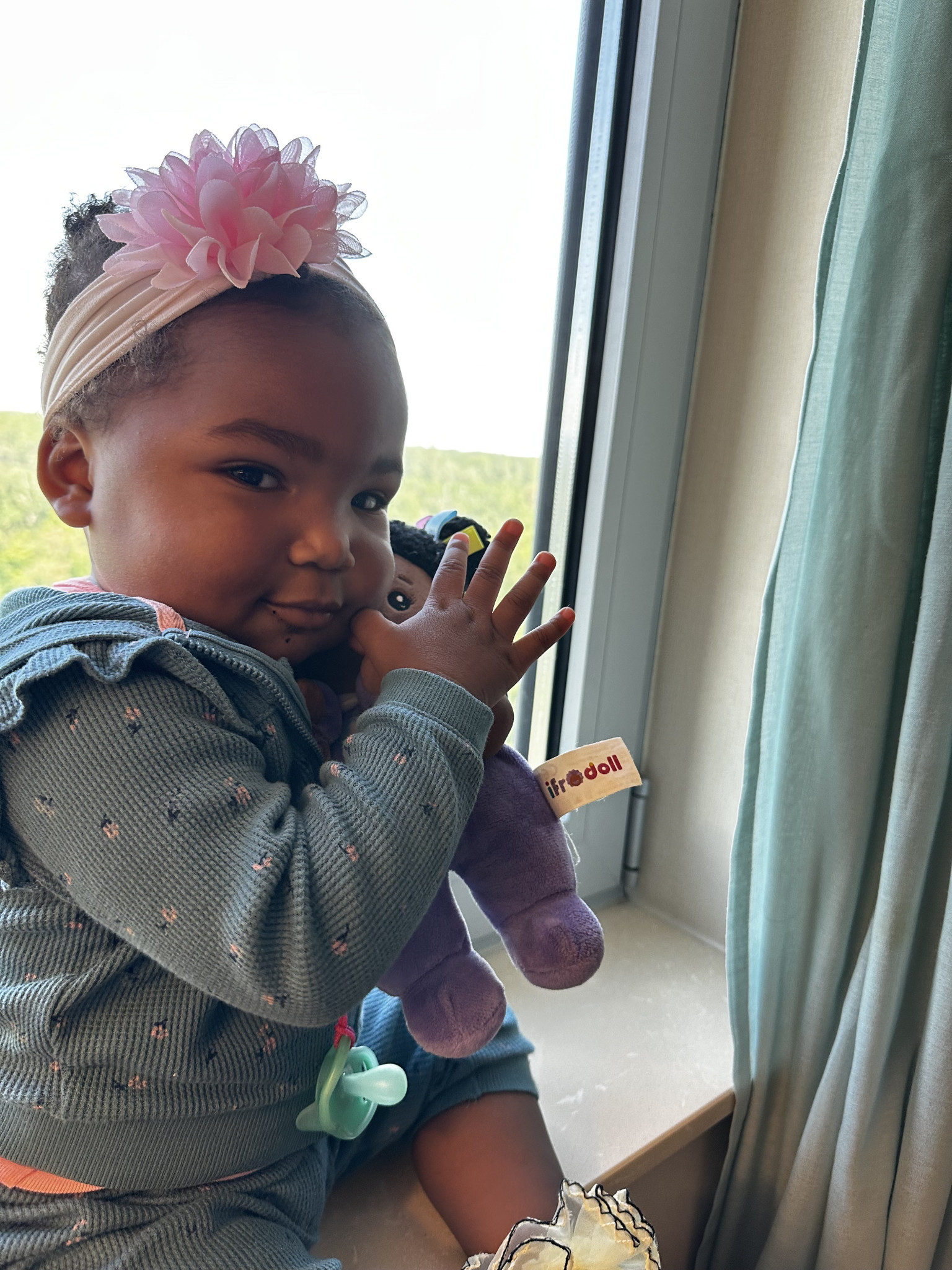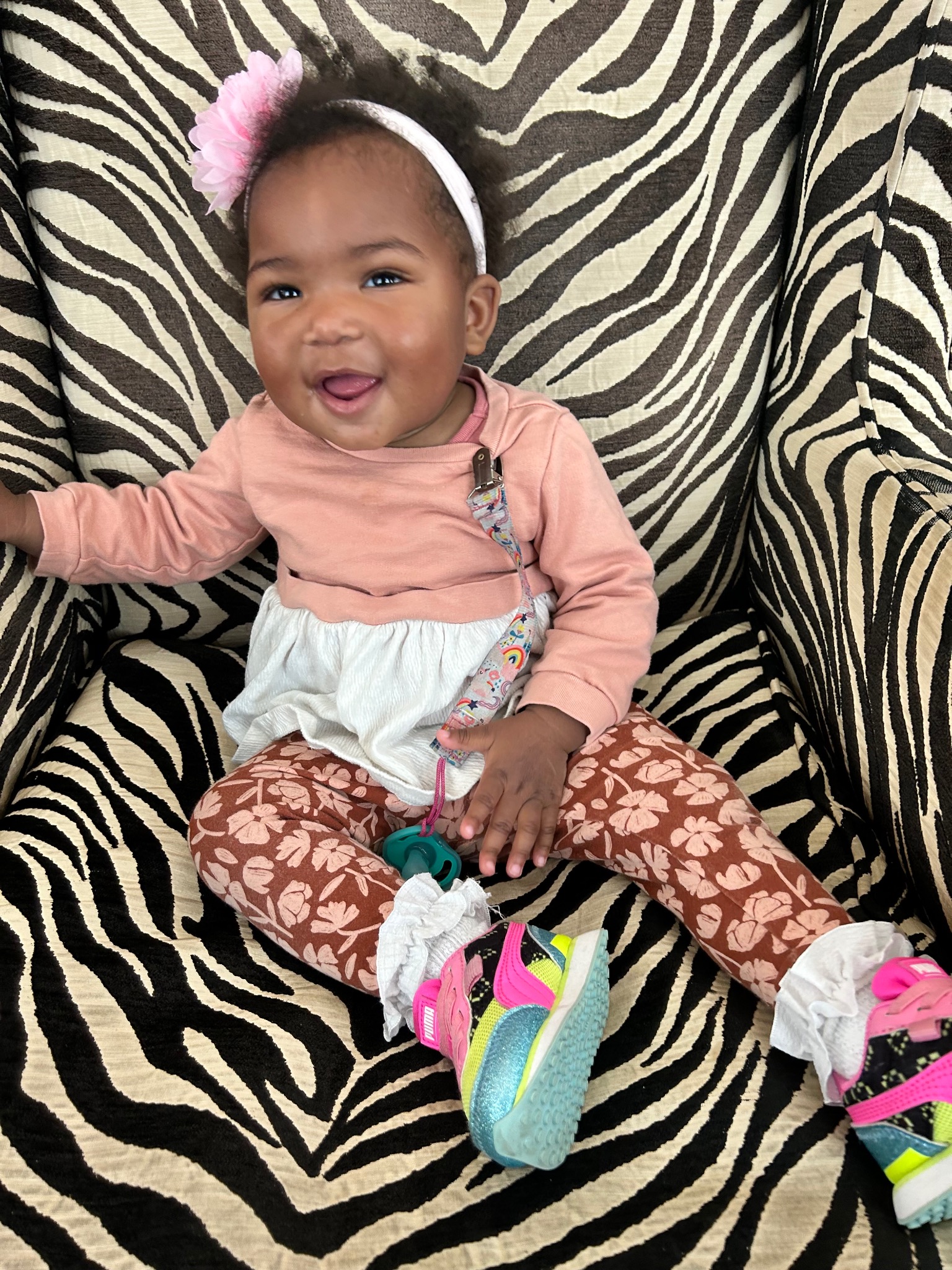 Given her start with hospital stay and nowhere to be discharge, the happiest baby! Wakes up clapping and singing. Poster child for JOY!