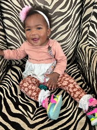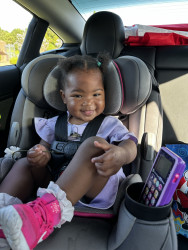 Skyla has a contagious smile and demeanor. Although she is in the stranger danger age, she always blows kisses and waves to passersby – from the shopping cart, stroller or others while in the community. Even on vacations, her own one-person parade. People (to include flight attendants, conductors, waitress, drivers…), remark “She is such a happy baby!” She learned to operate selfie mode and likes to capture herself grinning, just as much as the family does.