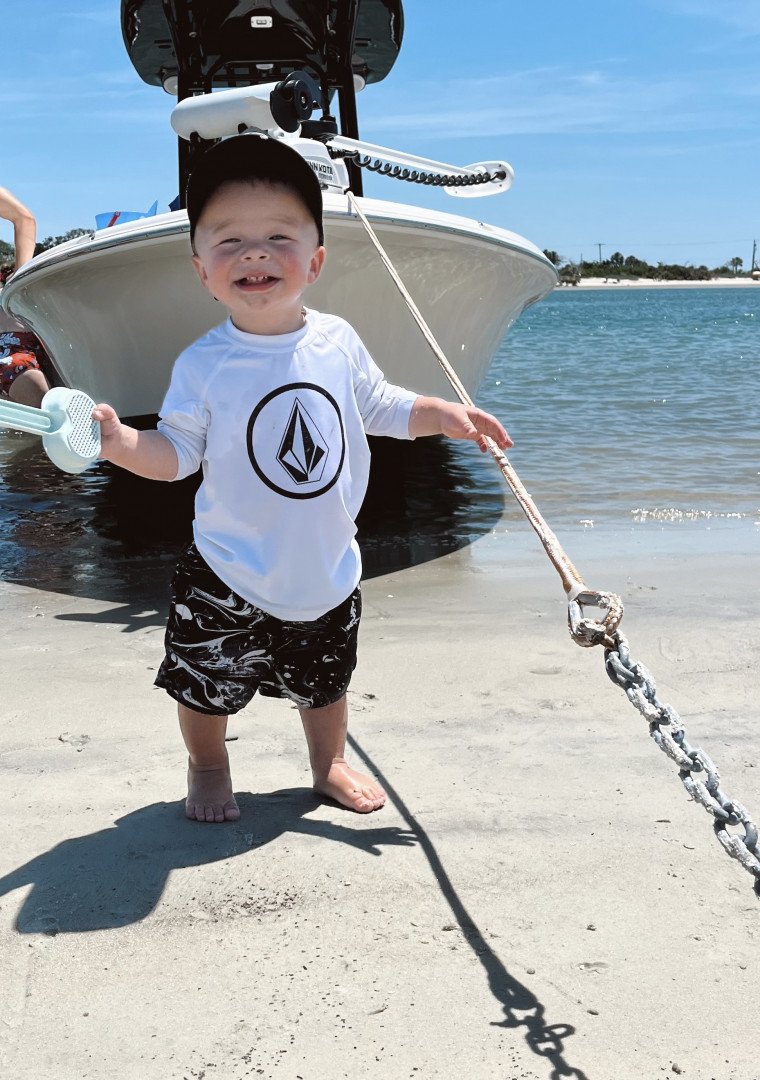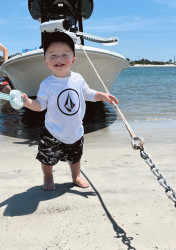 What are Slayter's favorite activities?Slayter is a water baby! He loves to swim in the pool and go out on the boat. He enjoys all things outside from playing in the dirt to watching the wildlife.He loves to climb, if it can be climbed he will do it. He enjoys going to the beach and riding on his little bike. He loves to play with his big brother and looks up to him. Slayter loves to end the evening with a walk in his stroller pointing at every mailbox we pass.