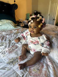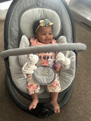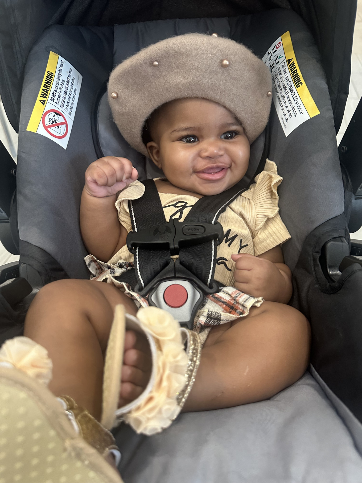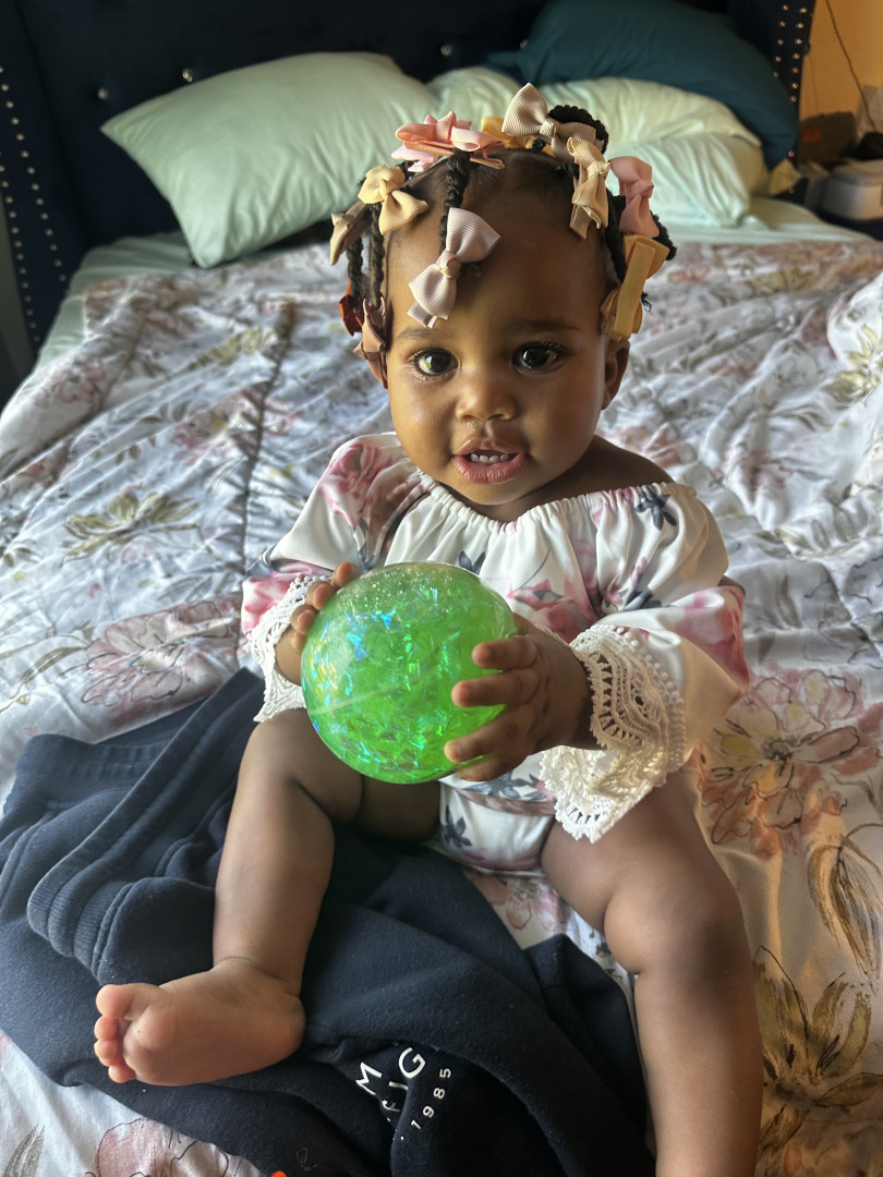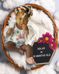 Solar is a bright and bubbly baby who's always smiling. She's funny, curious and loves to eat, explore and get into everything. She has a magnetic personality and an old, beautiful soul. She loves vibing out to Otis Redding, Al Green, The Manhattans, Bette Middler and other old school music artists. Her favorite song right now is Dreams to Remember by Otis Redding.