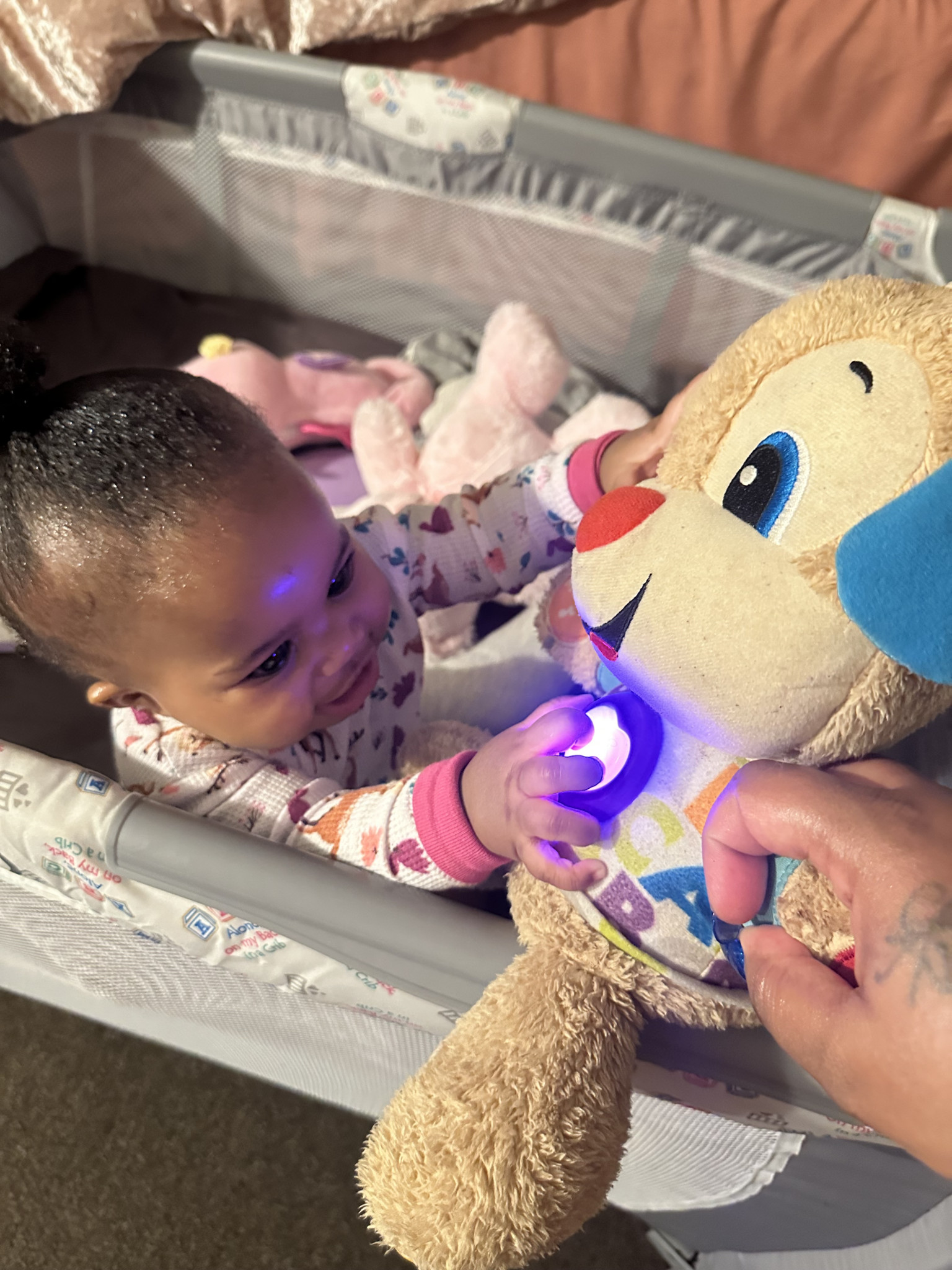 What are Solar Dunn's favorite activities?Some of her favorite activities involve playing with her 3 year old amazing, autistic brother, playing peek a boo, watching Ms. Rachel and Ms. Houston, working in her baby office, breastfeeding of course 🤣, and crawling around the house exploring.