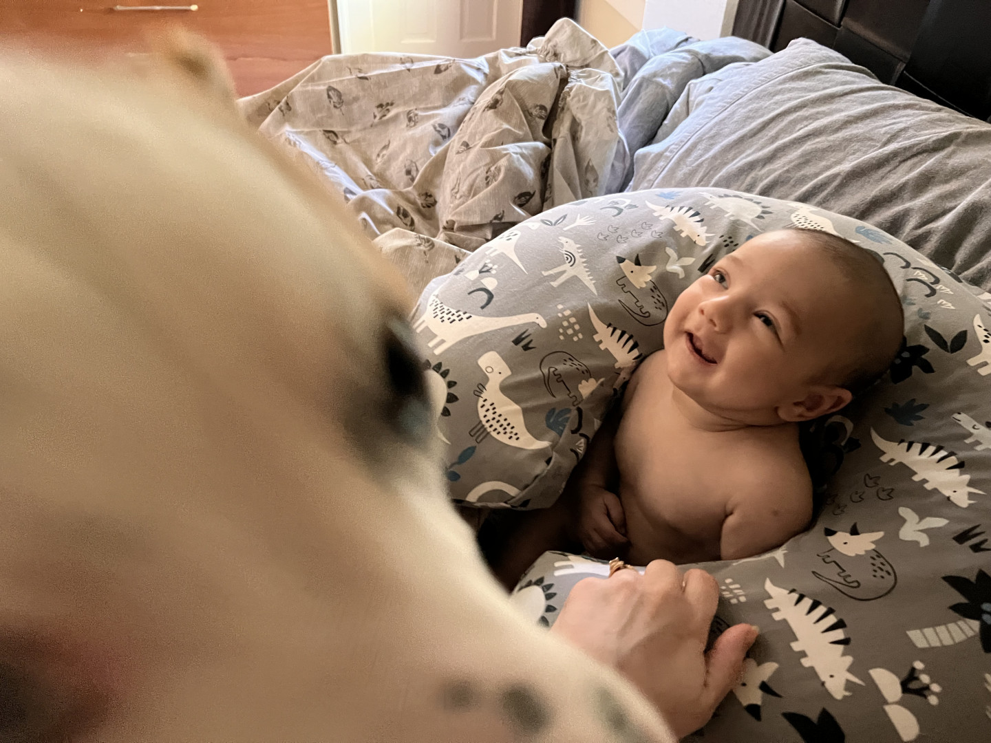 What are Sonny Zafar-Force's favorite activities?Playing with his 4-legged brother, breakdancing with Daddy, and snuggles from mom. We also love taking a dip in the pool and feeling grass on our feet! Don’t forget spending time with family—we love our Aunts and cousins from both sides!