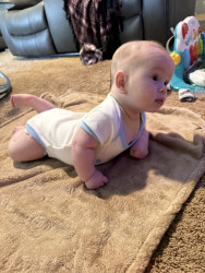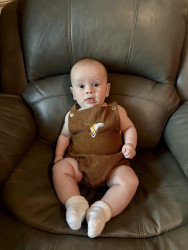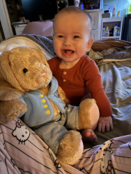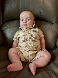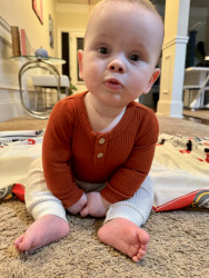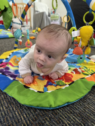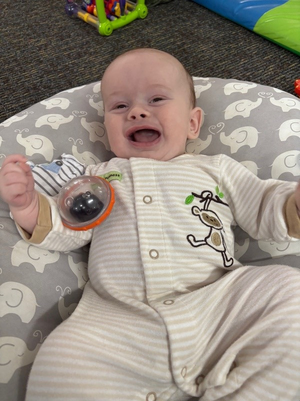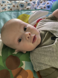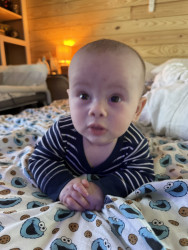 Sonny is so full of character! He loves to bat at his toys and kick his feet at his activity mat! He smiles at just about anything! He also LOVES tracking! He is a BIG foodie! He puts a smile on anyone’s face and he even throws in a little “attitude” here and there :)