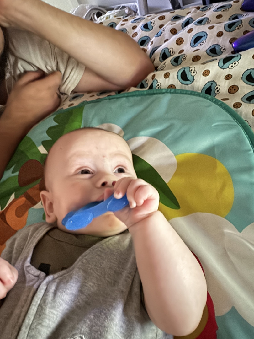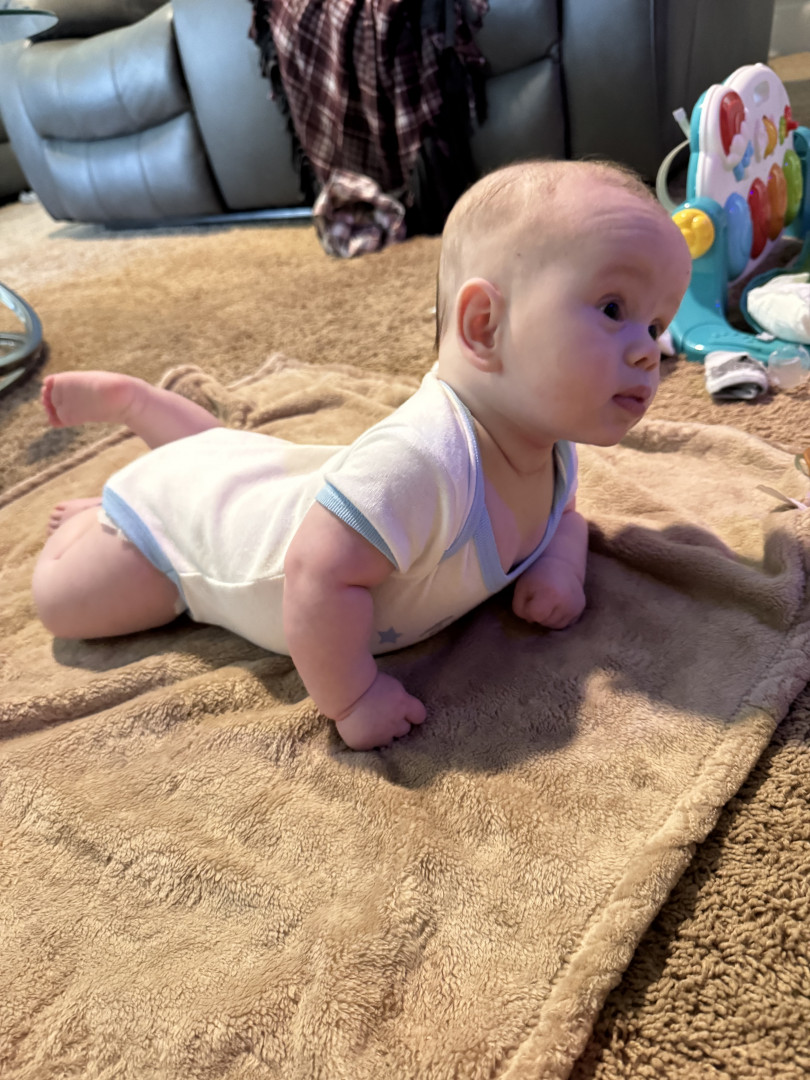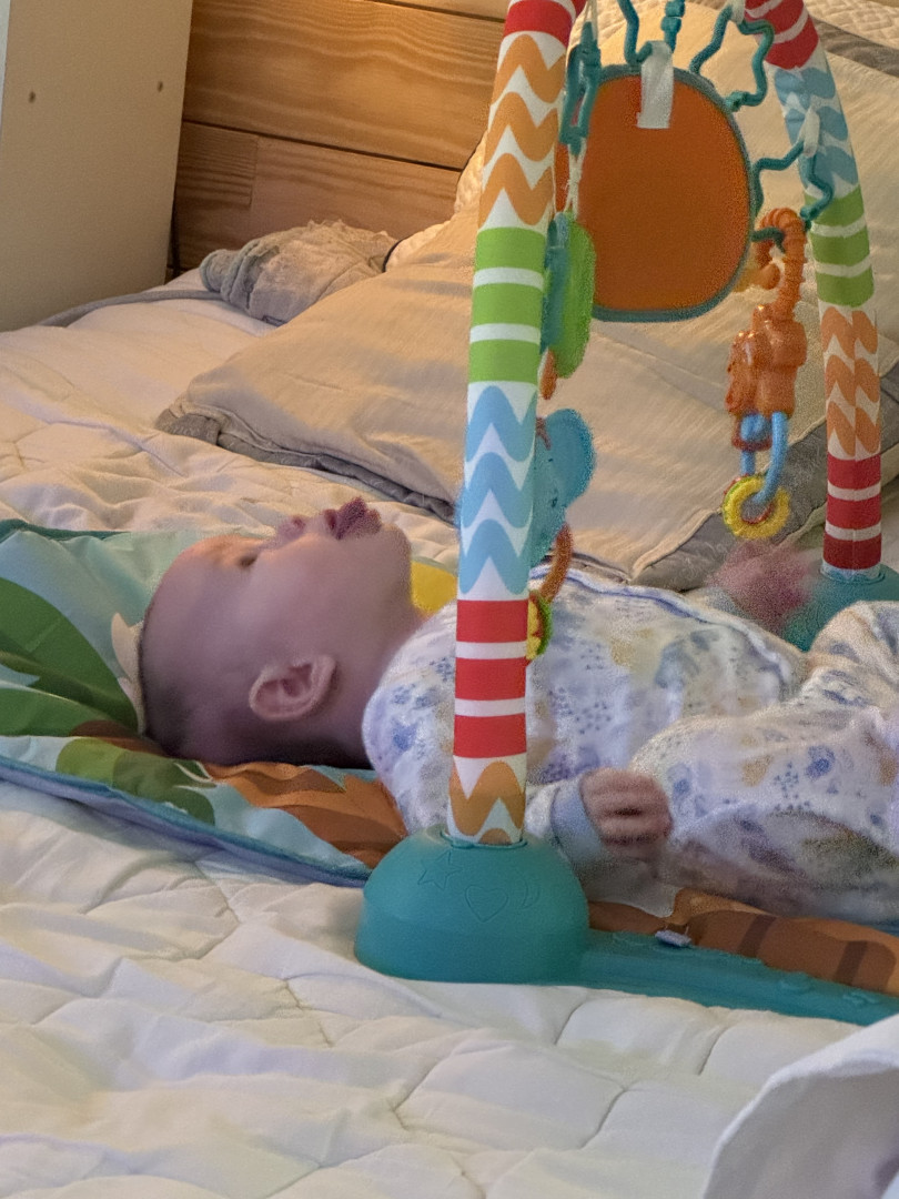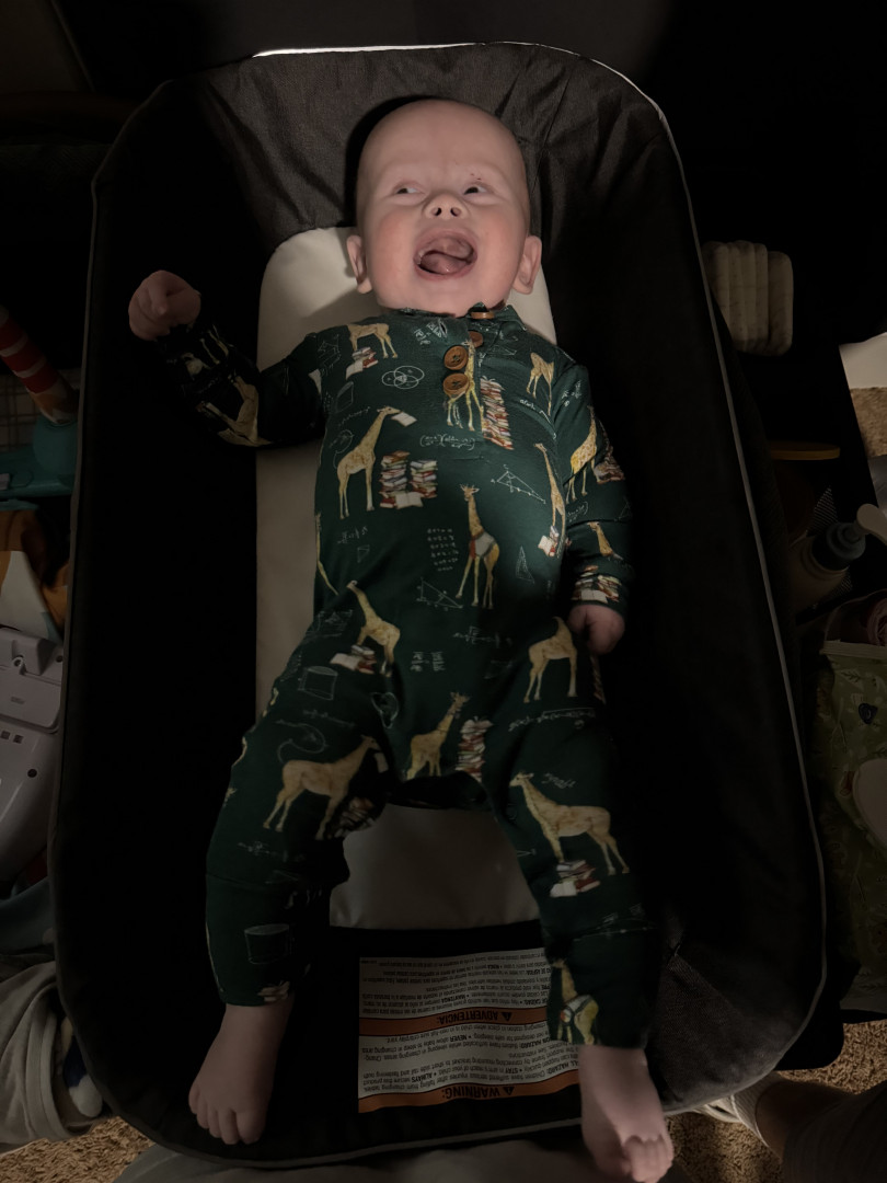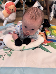 What are Sonny's favorite activities?Right now sonny’s favorite activities are playing on his activity mat, doing tummy time, and watching his fish on his portable fish tank! Loves to eat!
