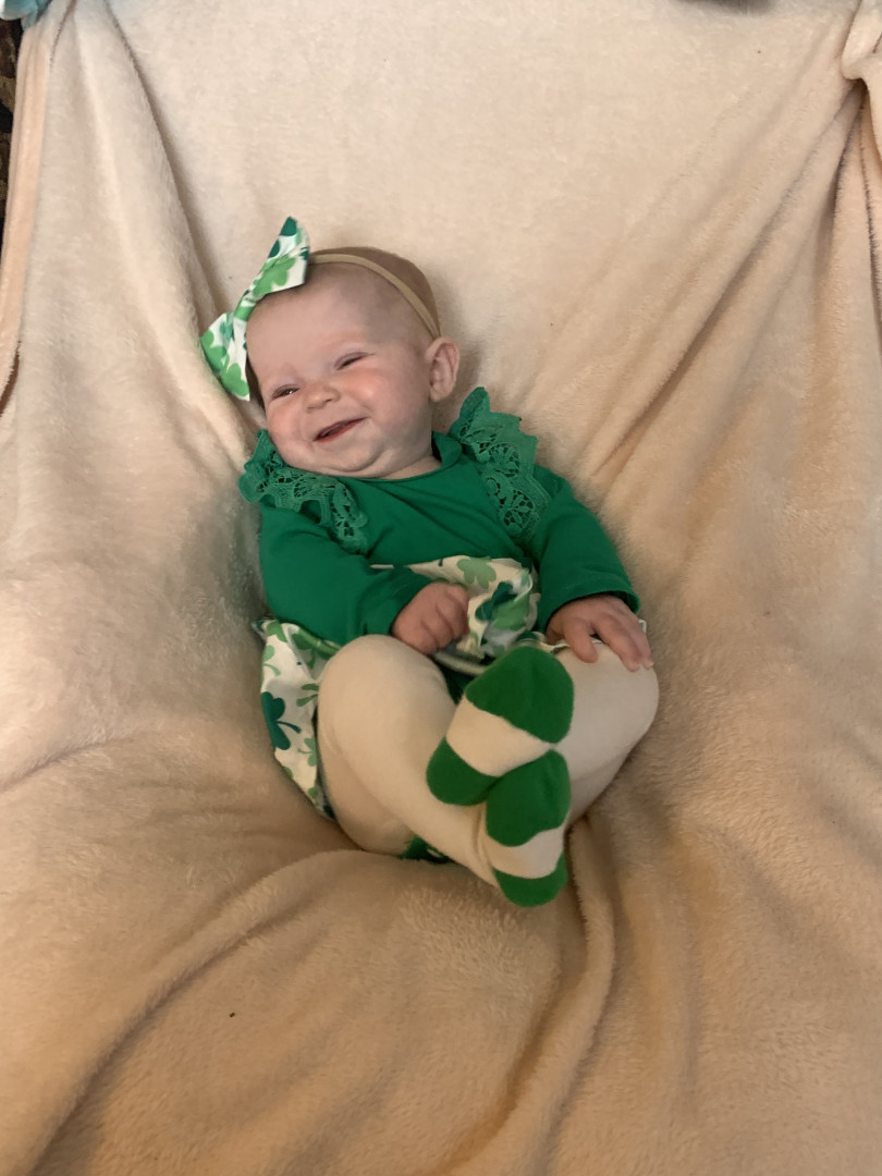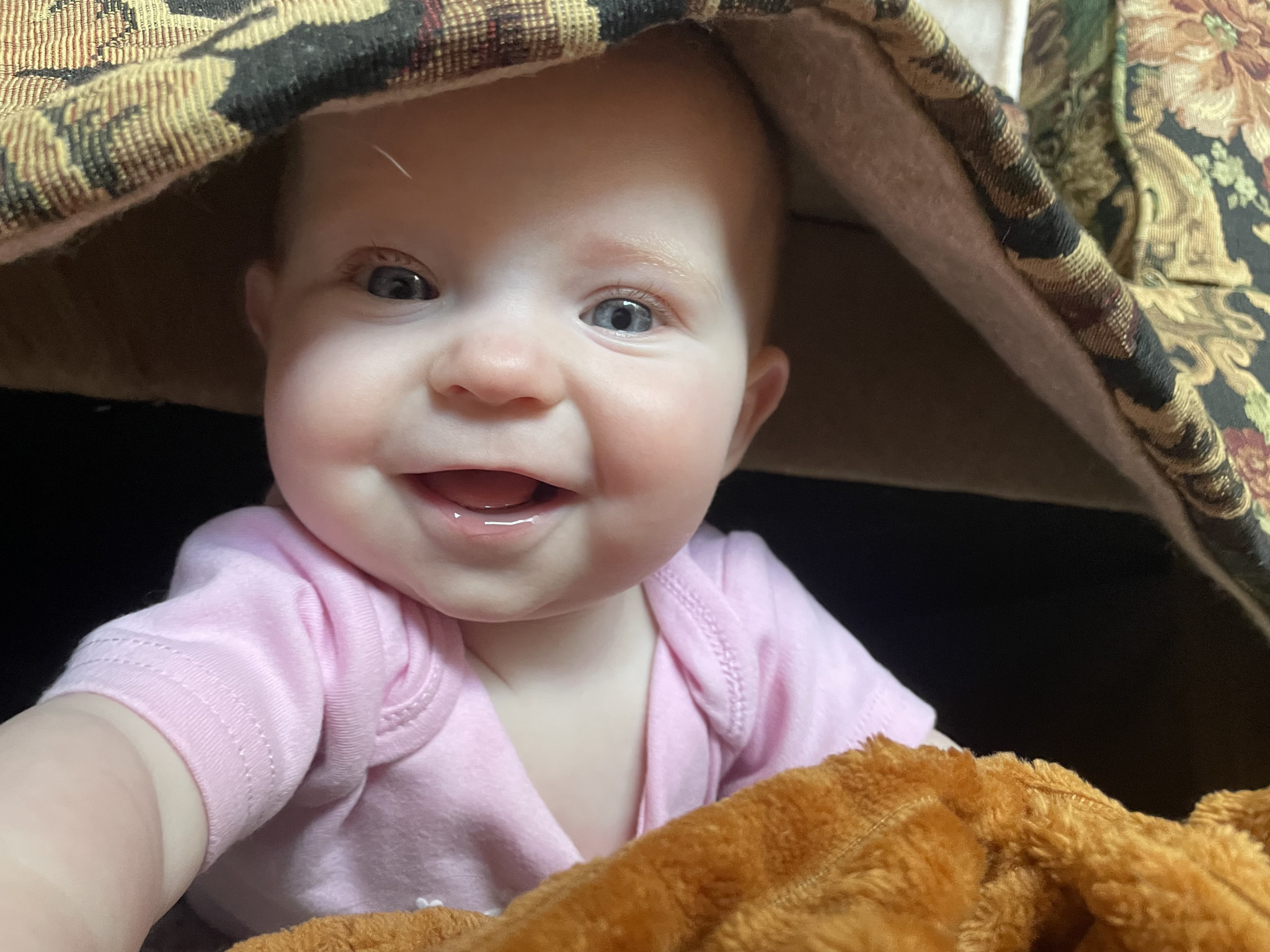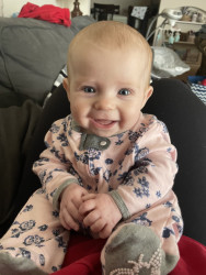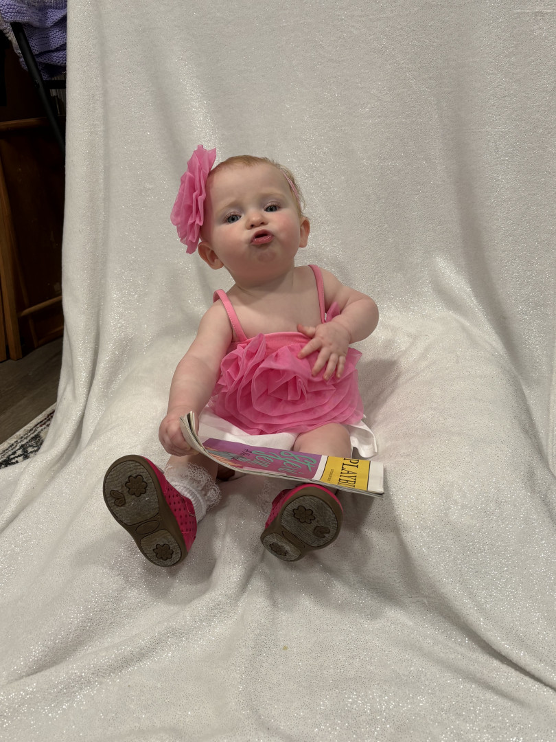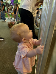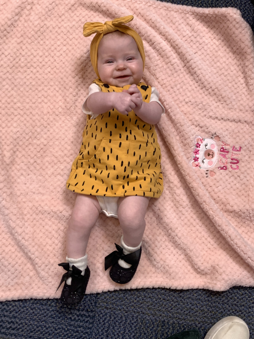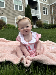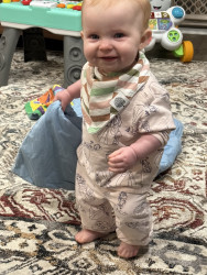 Curious & friendly. Stevie Jean smiles melt your heart. Babbles in English, German and Spanish with her bilingual family. Free spirited. Running/walking by 9-10 months, she is very busy running up and down hallways. She insists on doing things herself as a little independent woman. She makes herself giggle and just loves life!!