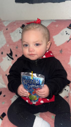 She truly is our Miracle baby! Her smile never fails to light up the room anywhere she is! Everywhere we go we get stopped just to tell us how precious and cute she is and she loves the attention! You will catch her screaming, playing, dancing And the cutest nose scrunch looks all day long! She loves to laugh and thinks it’s so funny anytime anyone laughs to copy them and laugh back! She loves cats and dogs! She gets really excited with our doggy who is always on the move she is such a lover!